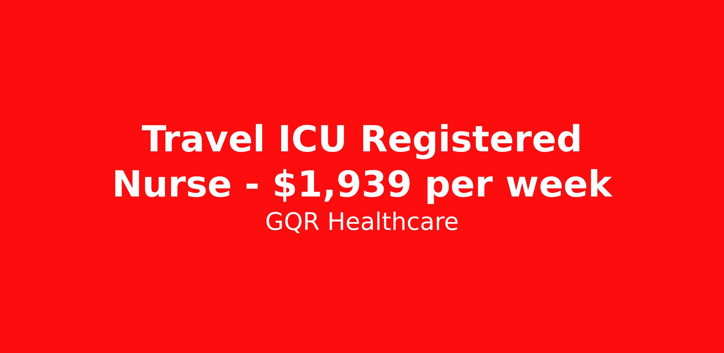 GQR Healthcare is seeking a travel nurse RN ICU - Intensive Care Unit for a travel nursing job in Lexington, Kentucky. Job Description & Requirements Specialty: ICU - Intensive Care Unit Discipline: RN Start Date: 04/06/2026 Duration: 13 weeks 36 hours per week Shift: 12 hours, nights Employment Type: Travel Contract - W2 ICU Registered Nurse (RN) Job Location: Lexington, Kentucky Start Date: April 6, 2026 Profession: Registered Nurse (RN) Facility: Short Term Acute Care Estimated Pay: $1938.73 - $2033.73 Duration:13 weeks Specialty:ICU Shift: Night Shift Details: null Night Job Type: Travel *Estimated weekly pay includes projected hourly wages and weekly meal and lodging per diems for eligible clinicians based on nationally published GSA rates. Actual weekly pay and per diems may differ from the amount shown and are subject to change during an assignment. Benefits: Day 1 Insurance Cigna medical, MetLife dental and vision insurance License reimbursement for new licenses needed for each assignment Discounts with hotels and rental cars A dedicated recruiter and support team that will help you every step of the way to sure you start on time and have an exceptional experience Referral bonus up to $700 About the Company: Finding the right role is about more than just matching skills to a job—it’s about aligning with your goals, values, and the way you want to work. As an award-winning talent partner, we support healthcare professionals through every step of that process, offering meaningful opportunities, clear guidance, and long-term partnership. From our first conversation to your first day on the job (and beyond!), we’re here to help you move forward with confidence. GQR Job ID 786782. Pay package is based on 12 hour shifts and 36 hours per week (subject to confirmation) with tax-free stipend amount to be determined. Posted job title: Registered Nurse (RN) About GQR Healthcare GQR’s Healthcare team specializes in connecting experts within the industry to highly skilled healthcare professionals across the US market. In the competitive healthcare market, we recognize that the industry’s common goals of improved quality of care and patient outcomes are wholly reliant upon the professionals directly supporting these initiatives. Leveraging our extensive candidate network, we deliver continuity of care for the communities our partners serve to ensure the patient experience is of the highest quality. Through deep market specialization and a unique approach to talent acquisition, GQR Healthcare provides an unparalleled and personalized experience across all medical specialties in nursing and within diverse healthcare platforms across the industry.