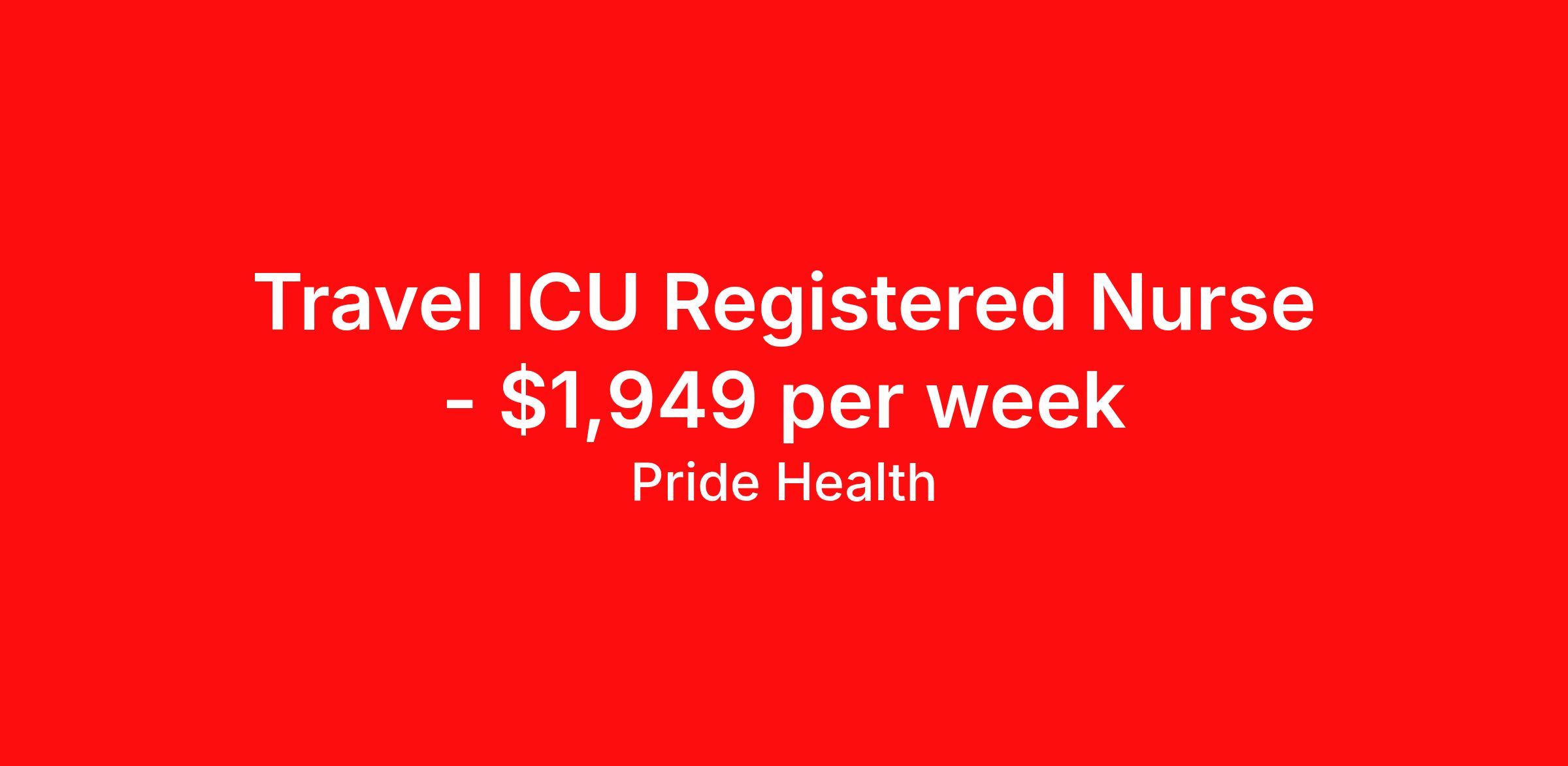 PRIDE Health is seeking a travel nurse RN ICU - Intensive Care Unit for a travel nursing job in Beaufort, South Carolina. Job Description & Requirements Specialty: ICU - Intensive Care Unit Discipline: RN Start Date: 04/08/2026 Duration: 13 weeks 36 hours per week Shift: 12 hours, nights Employment Type: Travel Pride Health Job ID 17998251. Pay package is based on 12 hour shifts and 36.0 hours per week (subject to confirmation) with tax-free stipend amount to be determined. Posted job title: RN:ICU,19:00:00-07:30:00 About PRIDE Health PRIDE Health is the minority-owned healthcare recruitment division of Pride Global—an integrated human capital solutions and advisory firm. With our robust and abundant travel nursing and allied health employment options across the U.S., PRIDE Health will allow you to help change the way the world lives and heals as it connects you with the industry’s leading healthcare organizations. Pride Global offers eligible employee’s comprehensive healthcare coverage (medical, dental, and vision plans), supplemental coverage (accident insurance, critical illness insurance and hospital indemnity), 401(k)-retirement savings, life & disability insurance, an employee assistance program, legal support, auto, home insurance, pet insurance, and employee discounts with preferred vendors. Benefits Weekly pay Holiday Pay Guaranteed Hours 401k retirement plan Cancelation protection Referral bonus Medical benefits Dental benefits Vision benefits