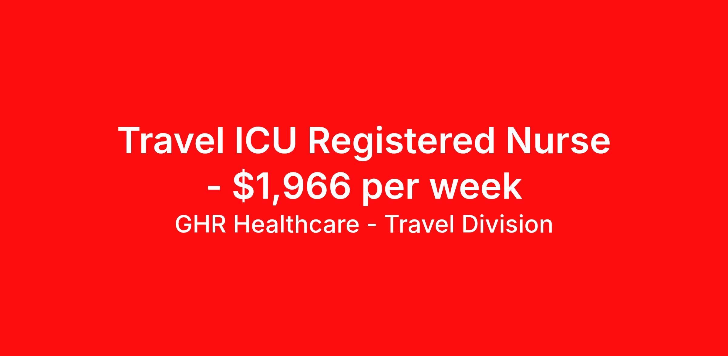 GHR Healthcare - Travel Division is seeking a travel nurse RN ICU - Intensive Care Unit for a travel nursing job in Asheville, North Carolina. Job Description & Requirements Specialty: ICU - Intensive Care Unit Discipline: RN Start Date: 03/30/2026 Duration: 13 weeks 36 hours per week Shift: 12 hours Employment Type: Travel GHR Healthcare - Travel Division Job ID 76188243. Pay package is based on 12 hour shifts and 36 hours per week (subject to confirmation) with tax-free stipend amount to be determined. About GHR Healthcare - Travel Division For over 30 years, GHR Healthcare has been the bridge between healthcare professionals and the facilities that need them nationwide. We're committed to uncovering your ideal fit, supported by GHR's dedication to competitive compensation, transparent communication, and a devoted team that genuinely cares about your career journey. You can trust us to stand by your side as your advocate, confidante, and partner in advancing your career. At GHR, care and consideration are at the heart of everything we do. Visit ghrhealthcare.com to learn more.