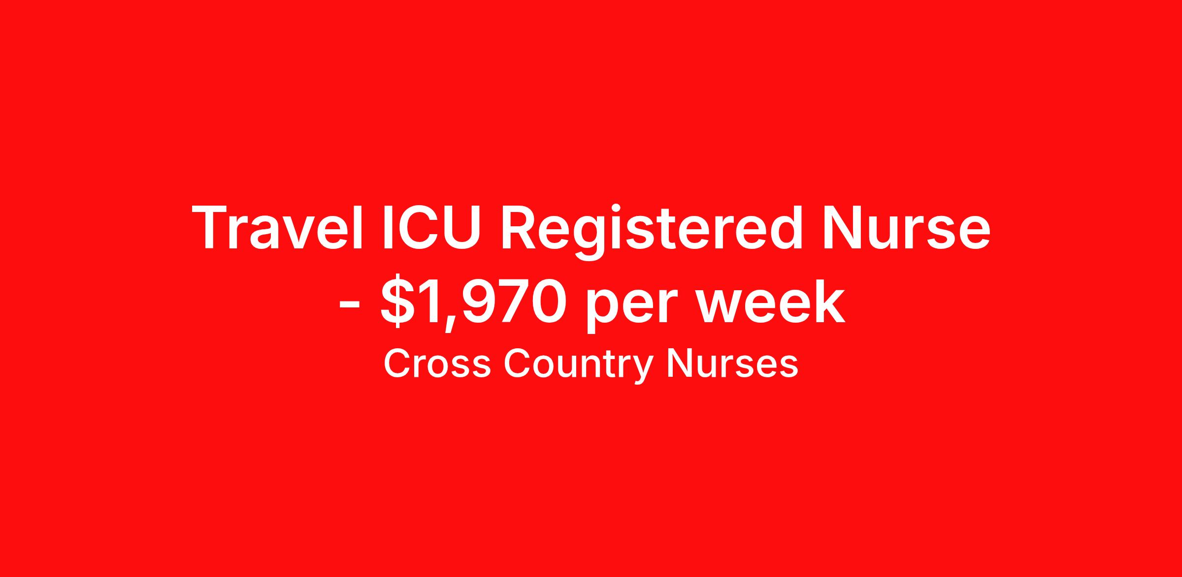 Cross Country Nurses is seeking a travel nurse RN ICU - Intensive Care Unit for a travel nursing job in Worcester, Massachusetts. Job Description & Requirements Specialty: ICU - Intensive Care Unit Discipline: RN Start Date: 04/06/2026 Duration: 10 weeks 36 hours per week Shift: 12 hours, nights Employment Type: Travel Job Description As an intensive care unit nurse (RN ICU), you will be monitoring patients with highly unstable, life-threatening conditions, to ensure they receive the best possible care. You must be able to rapidly assess a patient's condition and intervene with the appropriate care, managing various life-support systems like ventilation and heart-monitoring. Additionally, you will extend emotional support and education to gravely ill patients and their families. Minimum Requirements At least 1 year of recent acute care experience in specialty Active RN license Benefits The benefits of taking a travel nursing job with Cross Country include: Private housing or generous housing allowance Comprehensive health insurance with prescription coverage Dependent health insurance with prescription coverage Competitive salaries Referral bonuses Travel reimbursement 401(k) retirement plan Direct deposit/free checking Unlimited free CE credits Cross Country Job ID 1227296. Pay package is based on 12 hour shifts and 36 hours per week (subject to confirmation) with tax-free stipend amount to be determined. Posted job title: Registered Nurse / Intensive Care Unit About Cross Country Nurses You care for others — we’re here to care for you. At Cross Country, we know travel nursing is about more than just the job. It’s about building a career that supports your lifestyle, your values, and your impact. We offer competitive pay, full benefits, and 24/7 support from a team that truly understands what it means to be on the front lines. Wherever your journey takes you, we’re with you every step of the way. Let’s build your best life — one assignment at a time. Benefits 401k retirement plan Referral bonus