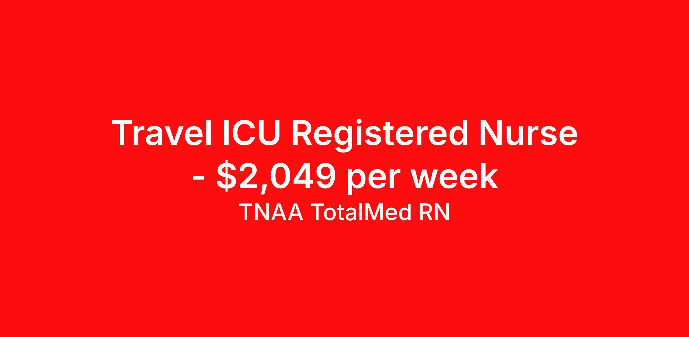 TNAA TotalMed RN is seeking a travel nurse RN ICU - Intensive Care Unit for a travel nursing job in Boston, Massachusetts. Job Description & Requirements Specialty: ICU - Intensive Care Unit Discipline: RN Duration: 13 weeks 36 hours per week Shift: 12 hours, rotating Employment Type: Travel We're looking for Intensive Care Unit RNs for an immediate travel nurse opening in Boston, MA. The right nurse should have 1-2 years recent acute care experience. Read below for more requirements. As an ICU Travel Nurse, you'll be responsible for evaluating and monitoring patients in an Intensive Care Unit setting. ICU RNs provide the most direct care to patients in life-threatening situations, documenting and providing physician-directed care, assessing and implementing patient care plans, and delegating to other care providers as appropriate. As an ICU RN you will also be providing education and support to patient families, possibly for long-term care needs. As an ICU Travel Nurse, you should be prepared to perform the following tasks: Provide basic bedside care. Prepare, administer and record prescribed medication, reporting any adverse reactions to treatment. Order and evaluate diagnostic tests. Take samples for lab work, order corresponding lab work and interpret reports. Monitor and adjust specialized equipment, and interpret and record electronic displays. Ensure proper placement and functioning of catheters, leads and tubing. Communicate patients' conditions to family members. ICU Travel Nurses should be able to stand and walk for long periods of time, as well as bend, lean and stoop without difficulty. RNs should be able to easily lift 20 pounds. Moving or lifting of patients may require lifting of up to 50 pounds at times. RNs may face hazards from exposure to certain chemicals or infectious diseases and will treat patients that may be confused, agitated, and/or uncooperative. Requirements*: BLS, ACLS, 3 Years * Additional certifications may be required before beginning an assignment. TotalMed Travel Job ID 1394661. Pay package is based on 12 hour shifts and 36 hours per week (subject to confirmation) with tax-free stipend amount to be determined. Posted job title: Intensive Care Unit - ICU RN - Travel Nurse About TNAA TotalMed RN TotalMed is a Top Ten, travel nursing and healthcare staffing agency with the mission of igniting purpose in healthcare. The organization staffs nurses, therapists, pharmacists, and other clinicians of all specialties in all 50 states. They offer local and travel jobs and match caregivers with the right organization to assist both facilities and patients. As an organization, they focus on putting highly-skilled staff into facilities to ensure adequate staffing for a better patient experience. TotalMed specializes in recruiting and placing healthcare professionals in travel, PRN, and permanent positions across the country in Nursing and Allied Health. Throughout 2020, the organization filled roles at even the most short-staffed facilities during the most challenging time in healthcare. By matching the right travel healthcare professional with the right organization, TotalMed continues to offer a lifeline to facilities and their patients. Benefits Weekly pay Guaranteed Hours Continuing Education 401k retirement plan Sick pay Wellness and fitness programs Referral bonus Employee assistance programs Medical benefits Dental benefits Vision benefits Benefits start day 1