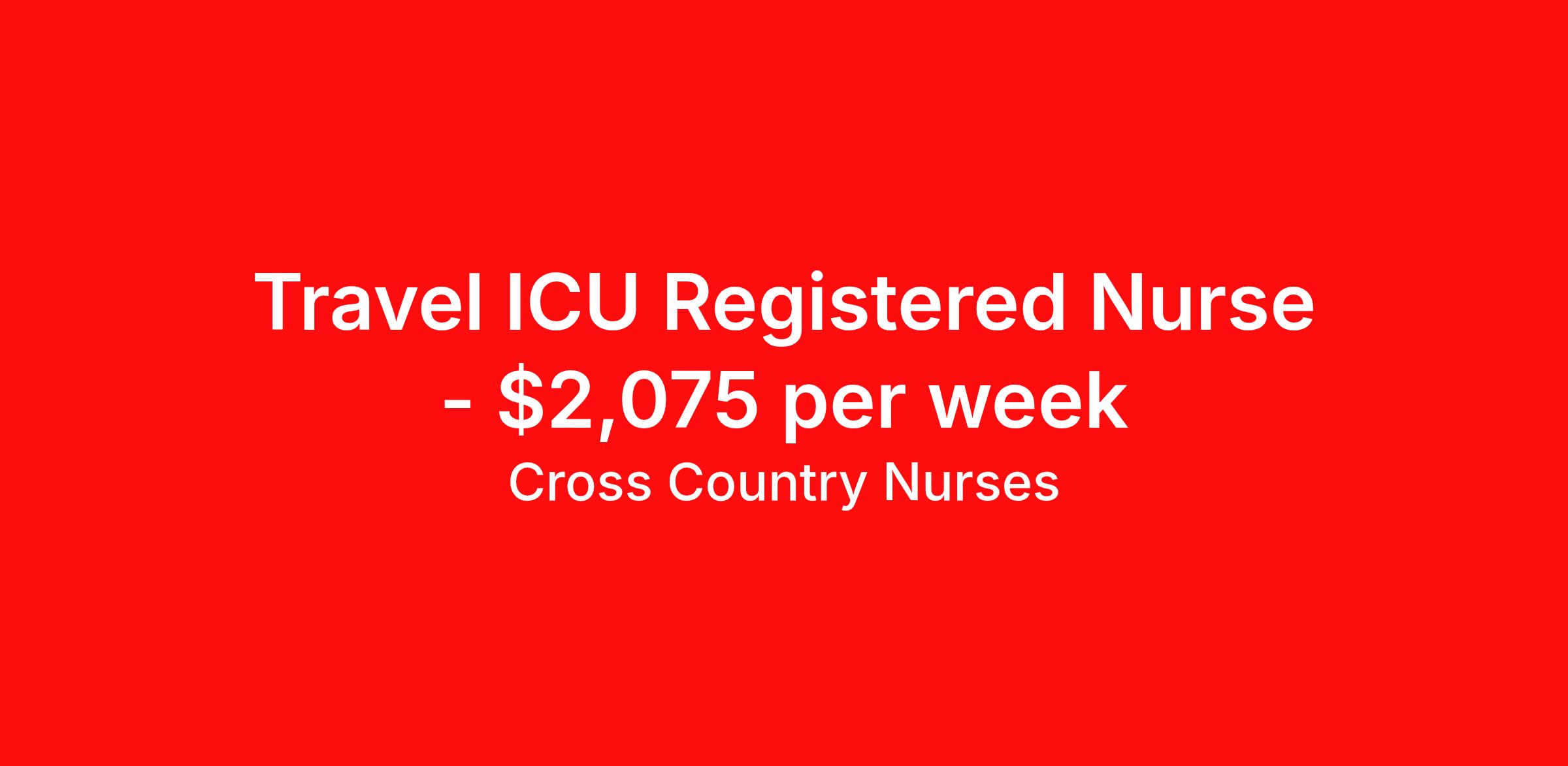 Cross Country Nurses is seeking a travel nurse RN ICU - Intensive Care Unit for a travel nursing job in Anderson, South Carolina. Job Description & Requirements Specialty: ICU - Intensive Care Unit Discipline: RN Start Date: 04/06/2026 Duration: 13 weeks 36 hours per week Shift: 12 hours, days Employment Type: Travel Job Description As an intensive care unit nurse (RN ICU), you will be monitoring patients with highly unstable, life-threatening conditions, to ensure they receive the best possible care. You must be able to rapidly assess a patient's condition and intervene with the appropriate care, managing various life-support systems like ventilation and heart-monitoring. Additionally, you will extend emotional support and education to gravely ill patients and their families. Minimum Requirements At least 1 year of recent acute care experience in specialty Active RN license Benefits The benefits of taking a travel nursing job with Cross Country include: Private housing or generous housing allowance Comprehensive health insurance with prescription coverage Dependent health insurance with prescription coverage Competitive salaries Referral bonuses Travel reimbursement 401(k) retirement plan Direct deposit/free checking Unlimited free CE credits Cross Country Job ID 1237252. Pay package is based on 12 hour shifts and 36 hours per week (subject to confirmation) with tax-free stipend amount to be determined. Posted job title: Registered Nurse / Intensive Care Unit About Cross Country Nurses You care for others — we’re here to care for you. At Cross Country, we know travel nursing is about more than just the job. It’s about building a career that supports your lifestyle, your values, and your impact. We offer competitive pay, full benefits, and 24/7 support from a team that truly understands what it means to be on the front lines. Wherever your journey takes you, we’re with you every step of the way. Let’s build your best life — one assignment at a time. Benefits 401k retirement plan Referral bonus