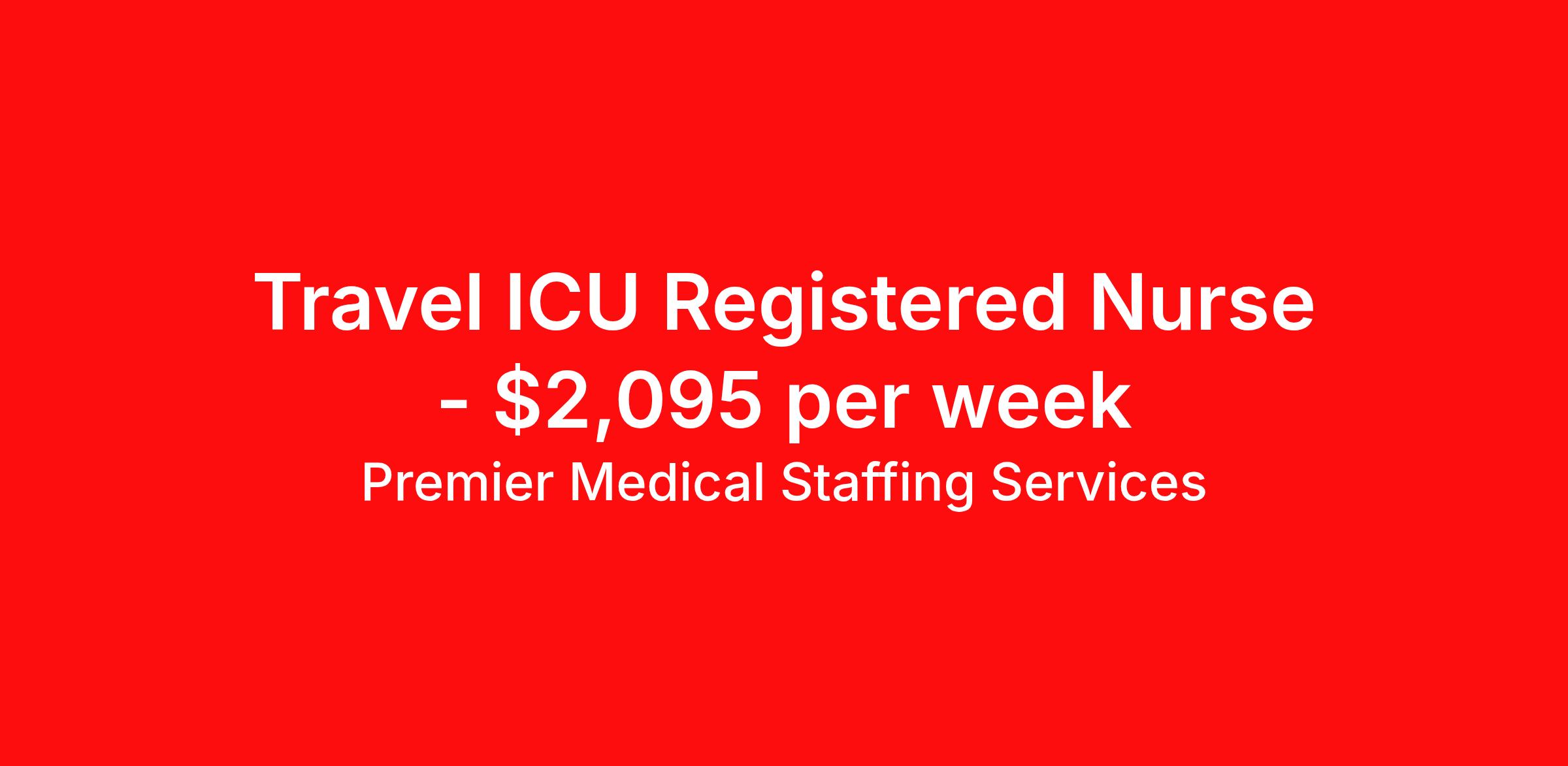 Premier Medical Staffing Services is seeking a travel nurse RN ICU - Intensive Care Unit for a travel nursing job in Franklin, Wisconsin. Job Description & Requirements Specialty: ICU - Intensive Care Unit Discipline: RN Start Date: 04/12/2026 Duration: 12 weeks 36 hours per week Shift: 12 hours Employment Type: Travel Premier Medical Staffing Job ID 620461. Pay package is based on 12 hour shifts and 36 hours per week (subject to confirmation) with tax-free stipend amount to be determined. Posted job title: RN ICU About Premier Medical Staffing Services Premier Medical Staffing Services, LLC is a nationally expanding healthcare staffing firm for healthcare professionals and companies. We understand our clients’ need for highly qualified, expertly trained medical professionals and are passionate about helping clinicians find employment opportunities that fit their personality and needs. Able to accommodate the ever-changing needs of the healthcare landscape, we offer per-diem, contract and direct hire placements to support the unique needs of each industry sector. Premier Medical Staffing Services is Joint Commission Certified, a Military Spouse Employment Partner and is certified as a Women’s Business Enterprise. We are proudly nurse owned.