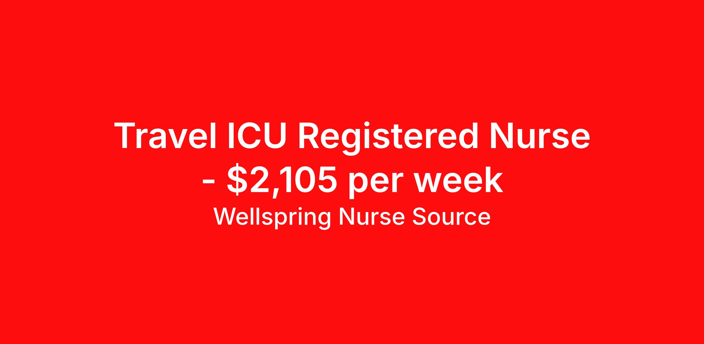 Wellspring Nurse Source is seeking a travel nurse RN ICU - Intensive Care Unit for a travel nursing job in Harvey, Illinois. Job Description & Requirements Specialty: ICU - Intensive Care Unit Discipline: RN Start Date: 04/13/2026 Duration: 13 weeks 36 hours per week Shift: 12 hours, days Employment Type: Travel Coordinates the delivery of nursing care for critically ill, post-operative, ventilator, post cardiac arrest, post heart cath, hemodynamic stabilization and other critically ill patients in the units. Wellspring Nurse Source Job ID 36199569. Pay package is based on 12 hour shifts and 36.0 hours per week (subject to confirmation) with tax-free stipend amount to be determined. Posted job title: RN ICU About Wellspring Nurse Source Wellspring is nurse owned and operated which means that we get you, we stand behind you, and we advocate for you. We are 100% committed to helping you find your best job at the best rate. We are unwavering in our commitment to supporting our clinicians on every step of their travel adventure, assisting with everything from onboarding and payroll to on-the-job clinical support with a dedicated Clinician Success Team. You’re not just a number at Wellspring, you’re a valued member of our family. Join us and experience the Wellspring difference.