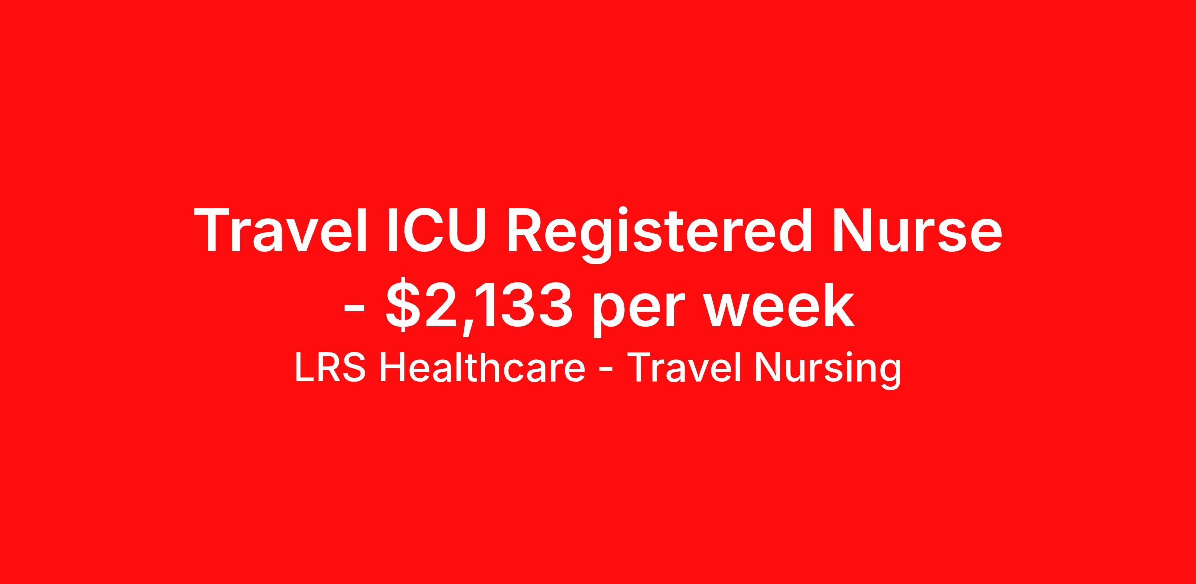 LRS Healthcare - Travel Nursing is seeking a travel nurse RN ICU - Intensive Care Unit for a travel nursing job in Dubuque, Iowa. Job Description & Requirements Specialty: ICU - Intensive Care Unit Discipline: RN Start Date: 03/30/2026 Duration: 13 weeks 36 hours per week Shift: 12 hours, nights Employment Type: Travel LRS Healthcare - Travel Nursing Job ID 74-70708. Pay package is based on 12 hour shifts and 36 hours per week (subject to confirmation) with tax-free stipend amount to be determined. About LRS Healthcare - Travel Nursing LRS Healthcare can lend a hand to take your career to new heights and places. As an industry leader in healthcare staffing, we work to connect you with jobs at top of the line facilities in the locations you’ve always wanted to live and visit. LRS is truly a full service medical staffing agency, so we take care of everything from housing and travel expenses to your itinerary, too. We handle it all because we want to be with you throughout your journey – not just your next placement. As a medical staffing agency that fosters long relationships with their employees, we’re determined to help amplify your personal and career growth through placement. We identify both temporary and permanent positions for candidates, and even some temp-to-perm positions that begin as 13-week programs. We have many positions available across the country, so let's discuss what would be a good fit for you! Benefits: Medical, Dental, and Vision Short-Term Disability Long-Term Disability Life Insurance 401(k) Certification & License Reimbursement Refer-a-friend Bonus Program Direct Deposit - Weekly 24-Hour Support Benefits Medical benefits Life insurance 401k retirement plan License and certification reimbursement Referral bonus Weekly pay