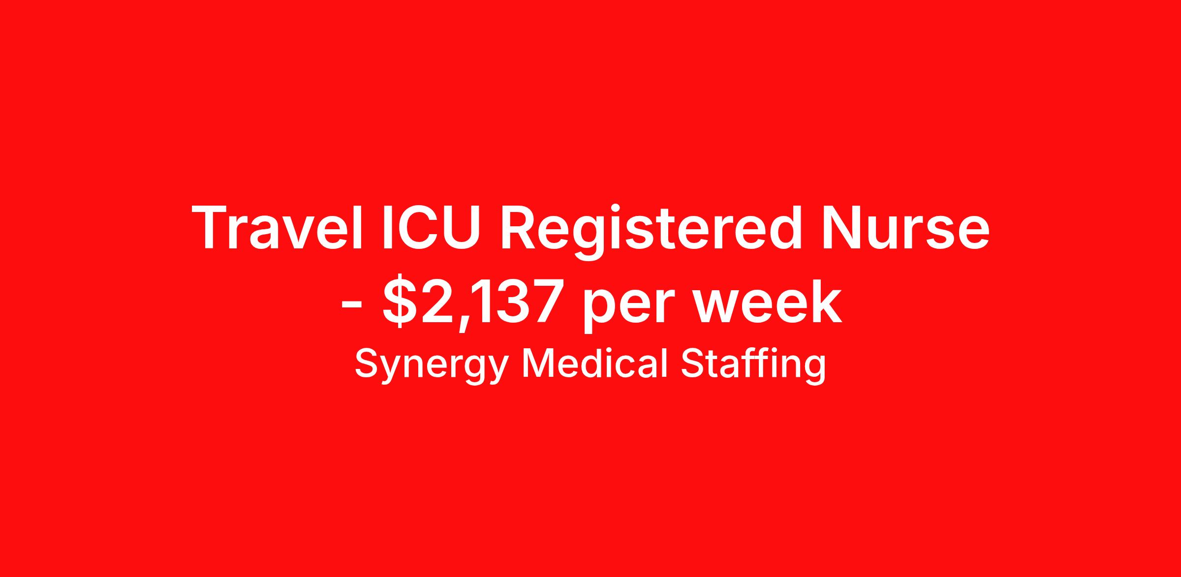 Synergy Medical Staffing is seeking a travel nurse RN ICU - Intensive Care Unit for a travel nursing job in Mason City, Iowa. Job Description & Requirements Specialty: ICU - Intensive Care Unit Discipline: RN Start Date: ASAP Duration: 13 weeks 36 hours per week Shift: 12 hours, nights Employment Type: Travel Travel, RN - ICU Location: Mason City, Iowa Shift: 3X12 Nights, 19:00:00-07:00:00, 12.00-3 Duration 13 Weeks When you join Synergy Medical Staffing, you’ll have a dedicated recruiter helping you at all times. Your recruiter is a cross between a career coach and a concierge. They will help you fine-tune your resume, find your next job, and locate an apartment (even one that takes pets!). Make one call and get help with everything from placement to housing to payroll, even travel directions! As a travel, contract and permanent placement medical staffing company with over 20 years of experience in the industry, we understand your needs. Synergy’s Benefits are best in class and include the following: 401K that matches up to 5% of your pay and you are 100% vested from Day 1. Medical, Dental, Vision, Life insurance, Long and short-term disability and others Loyality Program Weekly pay Holiday Pay (varies by Assignment) Guaranteed Hours (varies by Assignment) Referral bonus Continuing Education License and certification reimbursement Synergy Medical Staffing Job ID 36197116. Pay package is based on 12 hour shifts and 36.0 hours per week (subject to confirmation) with tax-free stipend amount to be determined. Posted job title: RN:ICU,19:00:00-07:00:00 About Synergy Medical Staffing When you join Synergy Medical Staffing, you’ll have a dedicated recruiter helping you at all times. Your recruiter is a cross between a career coach and a concierge. They will help you fine-tune your resume, find your next job, and locate an apartment (even one that takes pets!). Make one call and get help with everything from placement to housing to payroll, even travel directions! As a travel, contract and permanent placement medical staffing company with over 12 years of experience in the industry, we understand your needs. Are you interested in traveling, or just a job around the corner? Whatever your preference, you can be sure there are plenty of Nursing Jobs, Allied Jobs and Physical Therapy Jobs, Occupational Therapy Jobs, Speech Therapy Jobs and Rehab Therapy jobs anywhere you want to go. Synergy Medical Staffing professionals have been in the Medical staffing employment and staffing industry for over 12 years, and have developed solid relationships with numerous healthcare facilities nationwide. Contact us now and expand your medical career with new opportunities from Synergy Medical Staffing. Synergy’s Benefits are best in class and include the following 401K Day 1 Full Medical, Dental, Vision, Life insurance, Long and short term disability and others Student Loan Repayment and CEU reimbursement Loyalty bonus after 600 hours Benefits Discount program Weekly pay Holiday Pay Guaranteed Hours Referral bonus Medical benefits Dental benefits Continuing Education License and certification reimbursement Life insurance 401k retirement plan Cancelation protection Vision benefits