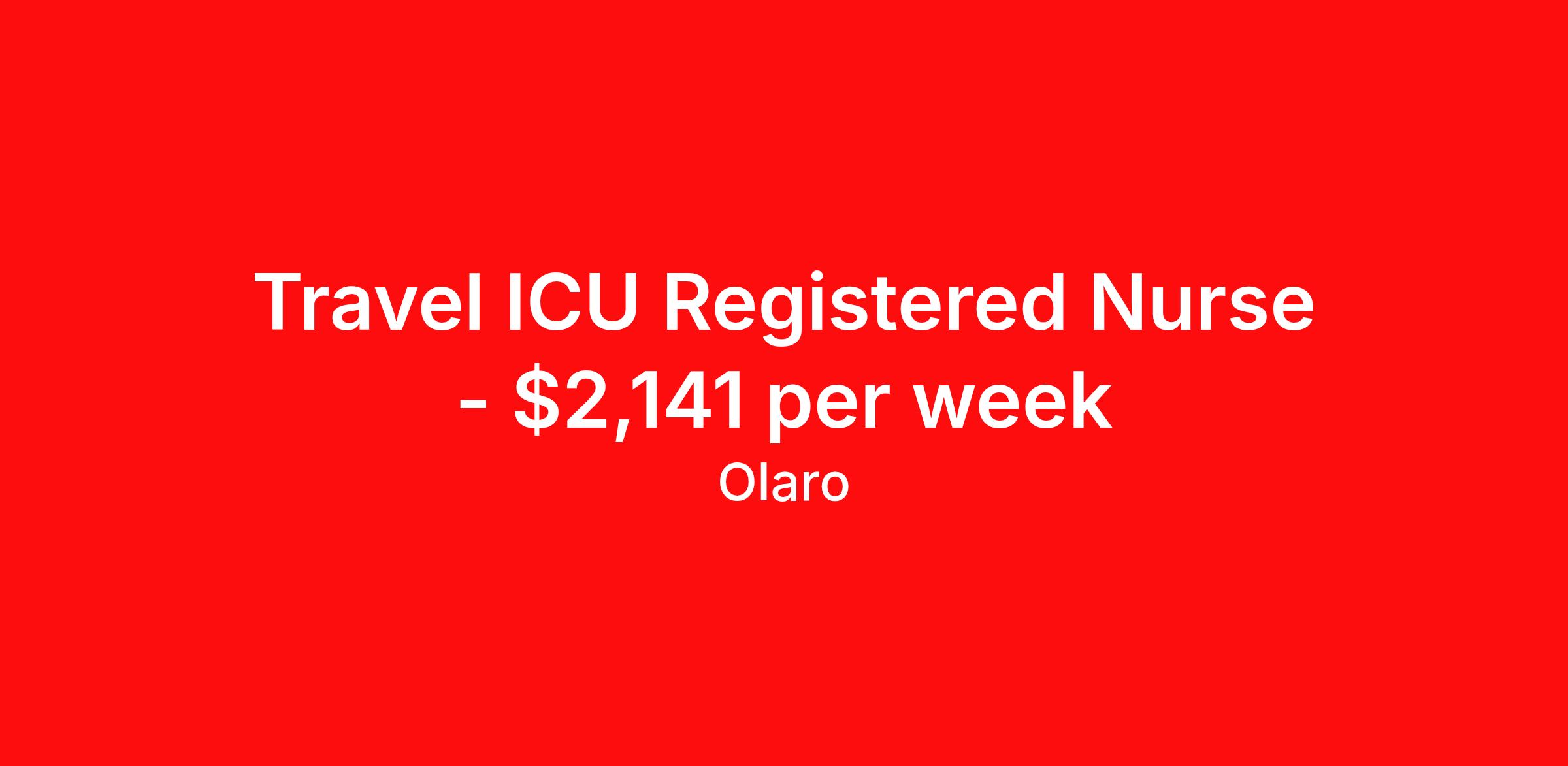 Olaro is seeking a travel nurse RN ICU - Intensive Care Unit for a travel nursing job in Rapid City, South Dakota. Job Description & Requirements Specialty: ICU - Intensive Care Unit Discipline: RN Start Date: 05/04/2026 Duration: 13 weeks 36 hours per week Shift: 12 hours, days Employment Type: Travel PHP Job ID 474638. Pay package is based on 12 hour shifts and 36 hours per week (subject to confirmation) with tax-free stipend amount to be determined. Posted job title: Registered Nurse - ICU12 Hour Days About Olaro Olaro Company Description Olaro is a trusted partner in healthcare staffing, connecting nurses and allied health professionals with opportunities nationwide. For over 35 years, we’ve helped clinicians expand their horizons by matching them with assignments that fit their lifestyle, career goals, and personal ambitions. At Olaro, we value your expertise and support your growth at every step. We offer competitive pay, comprehensive benefits, and access to diverse clinical experiences that build your skills and open doors to new possibilities. With 24/7 support, streamlined onboarding, and a team committed to your success, you’ll always have a proven guide by your side. Whether you want to explore new locations, broaden your clinical experience, or achieve better work–life balance, Olaro provides the flexibility and support to help you thrive. Join us, and let’s shape the future of healthcare together.