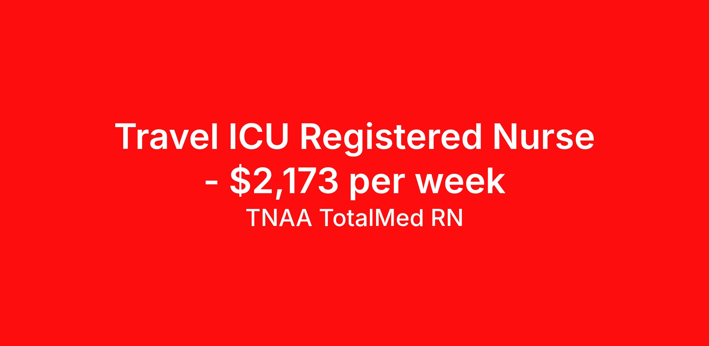 TNAA TotalMed RN is seeking a travel nurse RN ICU - Intensive Care Unit for a travel nursing job in Albuquerque, New Mexico. Job Description & Requirements Specialty: ICU - Intensive Care Unit Discipline: RN Duration: 13 weeks 48 hours per week Shift: 12 hours, nights Employment Type: Travel We're looking for Intensive Care Unit RNs for an immediate travel nurse opening in Albuquerque, NM. The right nurse should have 1-2 years recent acute care experience. Read below for more requirements. As an ICU Travel Nurse, you'll be responsible for evaluating and monitoring patients in an Intensive Care Unit setting. ICU RNs provide the most direct care to patients in life-threatening situations, documenting and providing physician-directed care, assessing and implementing patient care plans, and delegating to other care providers as appropriate. As an ICU RN you will also be providing education and support to patient families, possibly for long-term care needs. As an ICU Travel Nurse, you should be prepared to perform the following tasks: Provide basic bedside care. Prepare, administer and record prescribed medication, reporting any adverse reactions to treatment. Order and evaluate diagnostic tests. Take samples for lab work, order corresponding lab work and interpret reports. Monitor and adjust specialized equipment, and interpret and record electronic displays. Ensure proper placement and functioning of catheters, leads and tubing. Communicate patients' conditions to family members. ICU Travel Nurses should be able to stand and walk for long periods of time, as well as bend, lean and stoop without difficulty. RNs should be able to easily lift 20 pounds. Moving or lifting of patients may require lifting of up to 50 pounds at times. RNs may face hazards from exposure to certain chemicals or infectious diseases and will treat patients that may be confused, agitated, and/or uncooperative. Requirements*: ACLS, BLS, 2 Years * Additional certifications may be required before beginning an assignment. TotalMed Travel Job ID 1389067. Pay package is based on 12 hour shifts and 48 hours per week (subject to confirmation) with tax-free stipend amount to be determined. Posted job title: Intensive Care Unit - ICU RN - Travel Nurse About TNAA TotalMed RN TotalMed is a Top Ten, travel nursing and healthcare staffing agency with the mission of igniting purpose in healthcare. The organization staffs nurses, therapists, pharmacists, and other clinicians of all specialties in all 50 states. They offer local and travel jobs and match caregivers with the right organization to assist both facilities and patients. As an organization, they focus on putting highly-skilled staff into facilities to ensure adequate staffing for a better patient experience. TotalMed specializes in recruiting and placing healthcare professionals in travel, PRN, and permanent positions across the country in Nursing and Allied Health. Throughout 2020, the organization filled roles at even the most short-staffed facilities during the most challenging time in healthcare. By matching the right travel healthcare professional with the right organization, TotalMed continues to offer a lifeline to facilities and their patients. Benefits Weekly pay Guaranteed Hours Continuing Education 401k retirement plan Sick pay Wellness and fitness programs Referral bonus Employee assistance programs Medical benefits Dental benefits Vision benefits Benefits start day 1