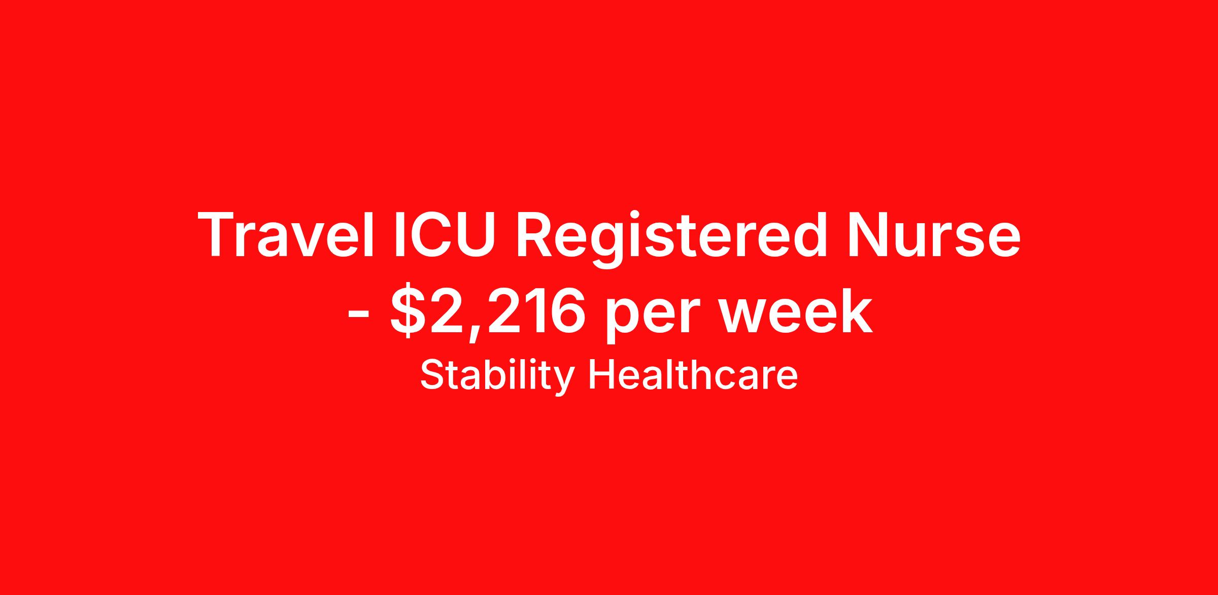 Stability Healthcare is seeking a travel nurse RN ICU - Intensive Care Unit for a travel nursing job in Freeport, Illinois. Job Description & Requirements Specialty: ICU - Intensive Care Unit Discipline: RN Start Date: 05/18/2026 Duration: 13 weeks 36 hours per week Shift: 12 hours, nights Employment Type: Travel Stability Healthcare is looking for a ICU RN contract position in Freeport, IL. Intensive Care Unit (ICU) Nurses treat acutely ill patients with life-threatening conditions, in settings requiring continuous vigilance and high-intensity therapies. ICU nurses can specialize in a variety of disciplines including medical, surgical, cardiac, burn or Neuro ICU. *$600 travel bonus *Day 1 health insurance with United Healthcare *PTO plan start accruing on day 1, use during contract or cash out at the end! *Guaranteed stipend if facility calls you off *Extra hour bonus earn an additional hourly bonus for working over your weekly contracted hours Stability Job ID 827781. Pay package is based on 12 hour shifts and 36 hours per week (subject to confirmation) with tax-free stipend amount to be determined. Posted job title: ICU About Stability Healthcare Stability Healthcare was founded in 2009, with the mission of becoming the best Travel Nursing Agency in California. We have been rated one of the top travel nursing agencies and offer our nurses the highest paying travel nursing jobs available. We have access to the best travel assignments from 1000’s of facilities. You can start the year off in sunny California, spend the Spring in the Colorado Rockies, enjoy the Summer in the Mid-West, experience the change of seasons in Boston and New York, and hit the beaches of Florida in the winter. Our Nurses work in the best hospitals and health systems in the country. Benefits Guaranteed Hours Benefits start day 1
