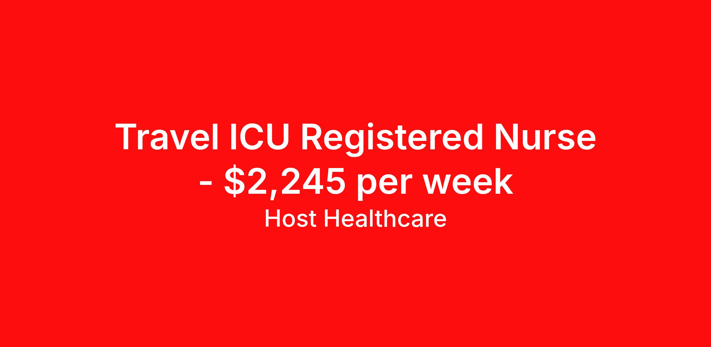 Host Healthcare is seeking a travel nurse RN ICU - Intensive Care Unit for a travel nursing job in Kearney, Nebraska. Job Description & Requirements Specialty: ICU - Intensive Care Unit Discipline: RN Start Date: 04/13/2026 Duration: 13 weeks 36 hours per week Shift: 12 hours, nights Employment Type: Travel Host Healthcare Job ID a1fVX000002xNInYAM. Pay package is based on 12 hour shifts and 36 hours per week (subject to confirmation) with tax-free stipend amount to be determined. Posted job title: RN - ICU About Host Healthcare At Host Healthcare, we provide a truly comfortable experience as you explore your travel nursing, therapy, or allied career. We make your travel healthcare journey easy by taking care of all the details, so you don’t have to. We are on a mission to help others live better and we do this by helping the healers of the world be as comfortable as possible. With access to tens of thousands of travel nursing, therapy, and allied jobs in all 50 states, our responsive and friendly recruiters find your dream position based on what’s important to you. During your assignment, get access to premium benefits, including Day 1 medical that continues up to 30 days between assignments, 401K matching, travel reimbursements, dedicated housing support, and more. We also offer 24/7 support from our team and access to our on-staff clinicians so you can feel comfortable and confident throughout your entire assignment. Travel comfortably with Host Healthcare. Benefits Referral bonus School loan reimbursement Vision benefits Wellness and fitness programs Company provided housing options License and certification reimbursement Life insurance Medical benefits Mileage reimbursement Pet insurance Discount program Employee assistance programs Guaranteed Hours Health savings account Holiday Pay 401k retirement plan Continuing Education Dental benefits