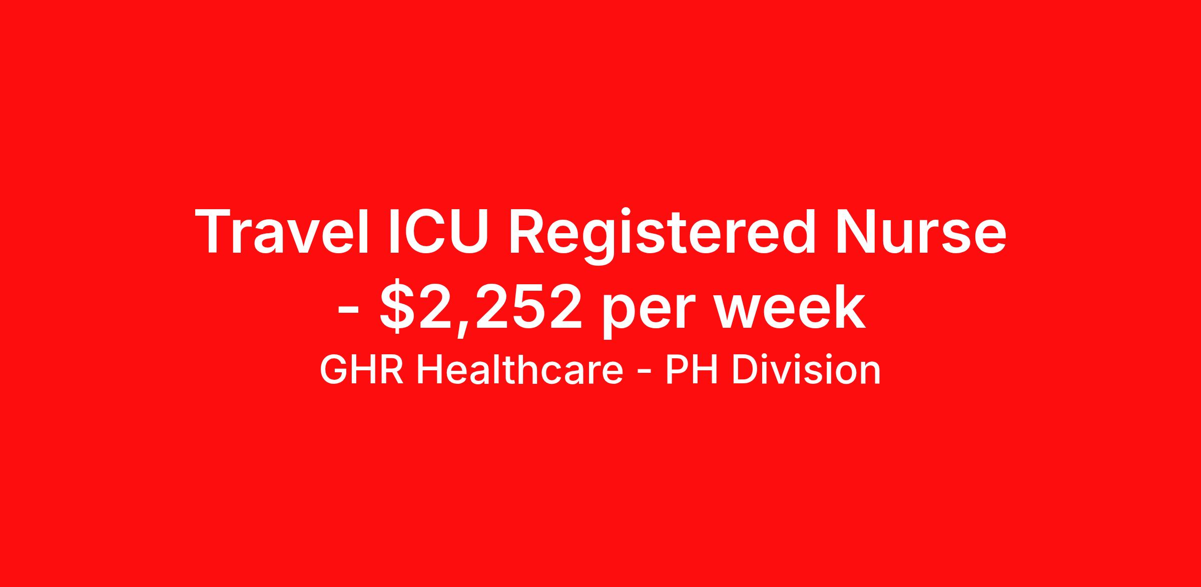 GHR Healthcare - PH Division is seeking a travel nurse RN ICU - Intensive Care Unit for a travel nursing job in Silvis, Illinois. Job Description & Requirements Specialty: ICU - Intensive Care Unit Discipline: RN Start Date: 03/30/2026 Duration: 12 weeks 36 hours per week Shift: 12 hours Employment Type: Travel Planet Healthcare Job ID 76173276. Pay package is based on 12 hour shifts and 36 hours per week (subject to confirmation) with tax-free stipend amount to be determined. About GHR Healthcare - PH Division For over 30 years, GHR Healthcare has been the bridge between healthcare professionals and the facilities that need them nationwide. We're committed to uncovering your ideal fit, supported by GHR's dedication to competitive compensation, transparent communication, and a devoted team that genuinely cares about your career journey. You can trust us to stand by your side as your advocate, confidante, and partner in advancing your career. At GHR, care and consideration are at the heart of everything we do. Visit ghrhealthcare.com to learn more.