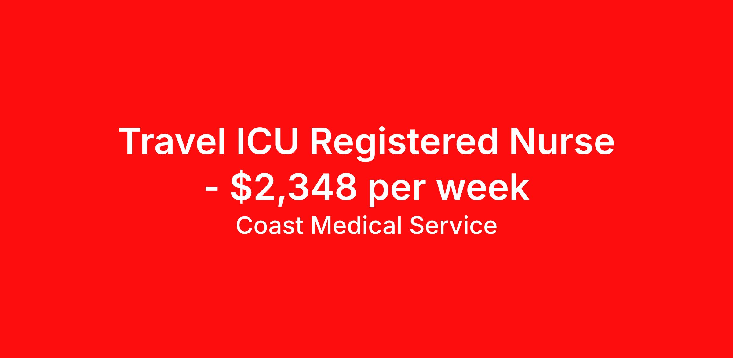 Coast Medical Service is seeking a travel nurse RN ICU - Intensive Care Unit for a travel nursing job in Washington, District of Columbia. Job Description & Requirements Specialty: ICU - Intensive Care Unit Discipline: RN Start Date: ASAP Duration: 13 weeks 36 hours per week Shift: 12 hours, nights Employment Type: Travel Coast Medical Service is a nationwide travel nursing & allied healthcare staffing agency dedicated to providing an elite traveler experience for the experienced or first-time traveler. Coast is featured on Blue Pipes' 2023 Best Travel Agencies and named a 2022 Top Rated Healthcare Staffing Firm & 2023 First Half Top Rated Healthcare Staffing Firm by Great Recruiters. Please note that pay rate may differ for locally based candidates. Please apply here or contact a recruiter directly to learn more about this position & the facility, and/or explore others that may be of interest to you. We look forward to speaking with you! Coast Medical Services Job ID 35265135. Pay package is based on 12 hour shifts and 36.0 hours per week (subject to confirmation) with tax-free stipend amount to be determined. Posted job title: RN:Intensive Care Unit (ICU),19:00:00-07:30:00