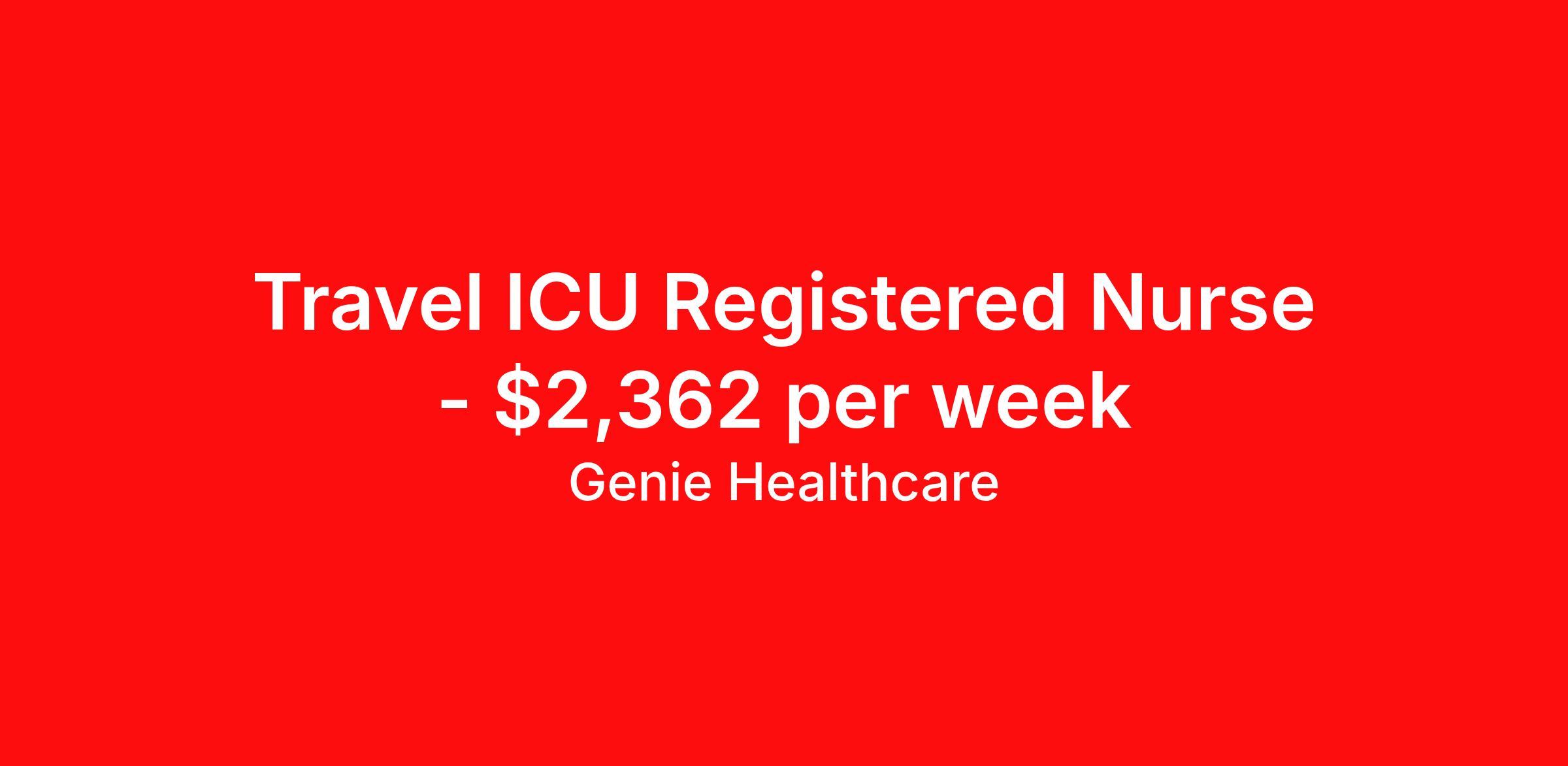 Genie Healthcare is seeking a travel nurse RN ICU - Intensive Care Unit for a travel nursing job in Freeport, Illinois. Job Description & Requirements Specialty: ICU - Intensive Care Unit Discipline: RN Start Date: 05/04/2026 Duration: 13 weeks 36 hours per week Shift: 12 hours, nights Employment Type: Travel Genie Healthcare is looking for a RN to work in Intensive Care Unit (ICU) for a 13 weeks travel assignment located in Freeport, IL for the Shift (3x12 nights, 19:00:00-07:00:00, 12.00-3). Pay and benefits packages are estimated based on client bill rate at time the job was posted. These rates are subject to change. Exact pay and benefits vary based on several things, including, but not limited to, guaranteed hours, client changes in bill rate, experience, etc. Benefits: Medical Insurance, Dental Insurance, Vision Insurance, 401(k) with company matching (50% up to 6% of what you contribute) Genie Healthcare Job ID 17976402. Pay package is based on 12 hour shifts and 36.0 hours per week (subject to confirmation) with tax-free stipend amount to be determined. Posted job title: RN:Intensive Care Unit (ICU),19:00:00-07:00:00 About Genie Healthcare Genie Healthcare is one of the fastest growing Nurse Travel Agencies in the USA. Genie serves hundreds of facilities and has over 4000 current travel RN contracts open at any given time. Genie provides travel RN’s flexibility, support, top pay scale, housing and the 1 rated, multi-state health insurance coverage. Genie Healthcare carries with it a commitment to providing a comprehensive level of service and quality care. Growing from a small team of eager recruiters to a company with satisfied clients in nearly every corner of the nation, delivering excellence in patient and customer care is the key to Genie’s success. The management team has 20 years of experience in workforce solutions and staffing in medical and non-medical fields, roles ranging from Clerical job to Cardiologist to software developer to CEO.