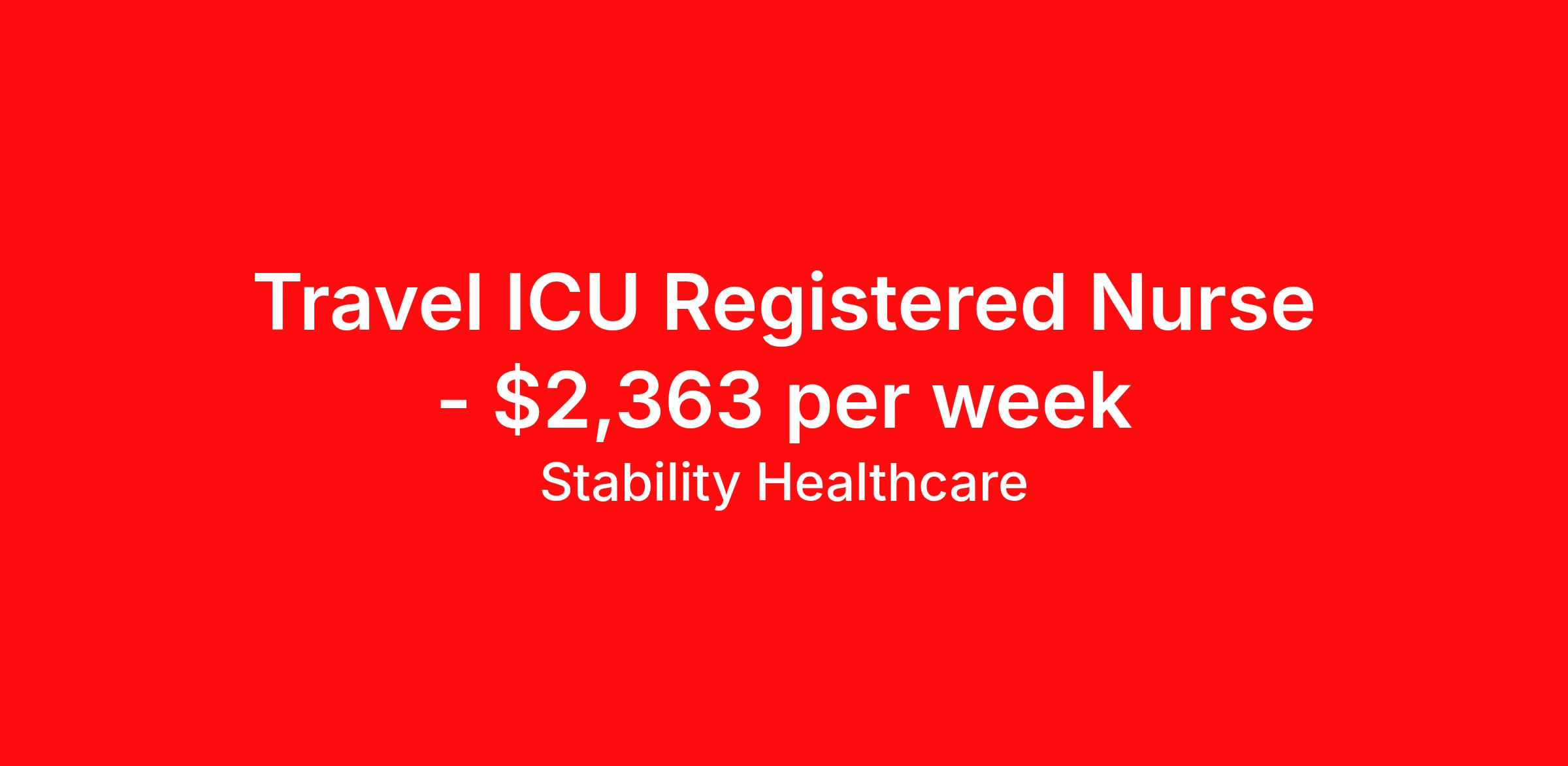 Stability Healthcare is seeking a travel nurse RN ICU - Intensive Care Unit for a travel nursing job in Quincy, Illinois. Job Description & Requirements Specialty: ICU - Intensive Care Unit Discipline: RN Duration: 13 weeks 36 hours per week Shift: 12 hours, nights Employment Type: Travel Stability Healthcare is looking for a ICU RN contract position in Quincy, IL. Intensive Care Unit (ICU) Nurses treat acutely ill patients with life-threatening conditions, in settings requiring continuous vigilance and high-intensity therapies. ICU nurses can specialize in a variety of disciplines including medical, surgical, cardiac, burn or Neuro ICU. *$600 travel bonus *Day 1 health insurance with United Healthcare *PTO plan start accruing on day 1, use during contract or cash out at the end! *Guaranteed stipend if facility calls you off *Extra hour bonus earn an additional hourly bonus for working over your weekly contracted hours Stability Job ID 825556. Pay package is based on 12 hour shifts and 36 hours per week (subject to confirmation) with tax-free stipend amount to be determined. Posted job title: ICU About Stability Healthcare Stability Healthcare was founded in 2009, with the mission of becoming the best Travel Nursing Agency in California. We have been rated one of the top travel nursing agencies and offer our nurses the highest paying travel nursing jobs available. We have access to the best travel assignments from 1000’s of facilities. You can start the year off in sunny California, spend the Spring in the Colorado Rockies, enjoy the Summer in the Mid-West, experience the change of seasons in Boston and New York, and hit the beaches of Florida in the winter. Our Nurses work in the best hospitals and health systems in the country. Benefits Guaranteed Hours Benefits start day 1