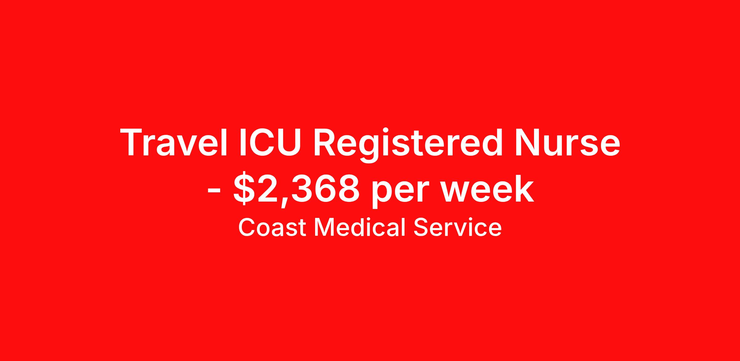 Coast Medical Service is seeking a travel nurse RN ICU - Intensive Care Unit for a travel nursing job in Omaha, Nebraska. Job Description & Requirements Specialty: ICU - Intensive Care Unit Discipline: RN Start Date: 04/13/2026 Duration: 13 weeks 36 hours per week Shift: 12 hours, nights Employment Type: Travel Coast Medical Service is a nationwide travel nursing & allied healthcare staffing agency dedicated to providing an elite traveler experience for the experienced or first-time traveler. Coast is featured on Blue Pipes' 2023 Best Travel Agencies and named a 2022 Top Rated Healthcare Staffing Firm & 2023 First Half Top Rated Healthcare Staffing Firm by Great Recruiters. Please note that pay rate may differ for locally based candidates. Please apply here or contact a recruiter directly to learn more about this position & the facility, and/or explore others that may be of interest to you. We look forward to speaking with you! Coast Medical Services Job ID 36188798. Pay package is based on 12 hour shifts and 36.0 hours per week (subject to confirmation) with tax-free stipend amount to be determined. Posted job title: RN:Intensive Care Unit (ICU),19:00:00-07:30:00