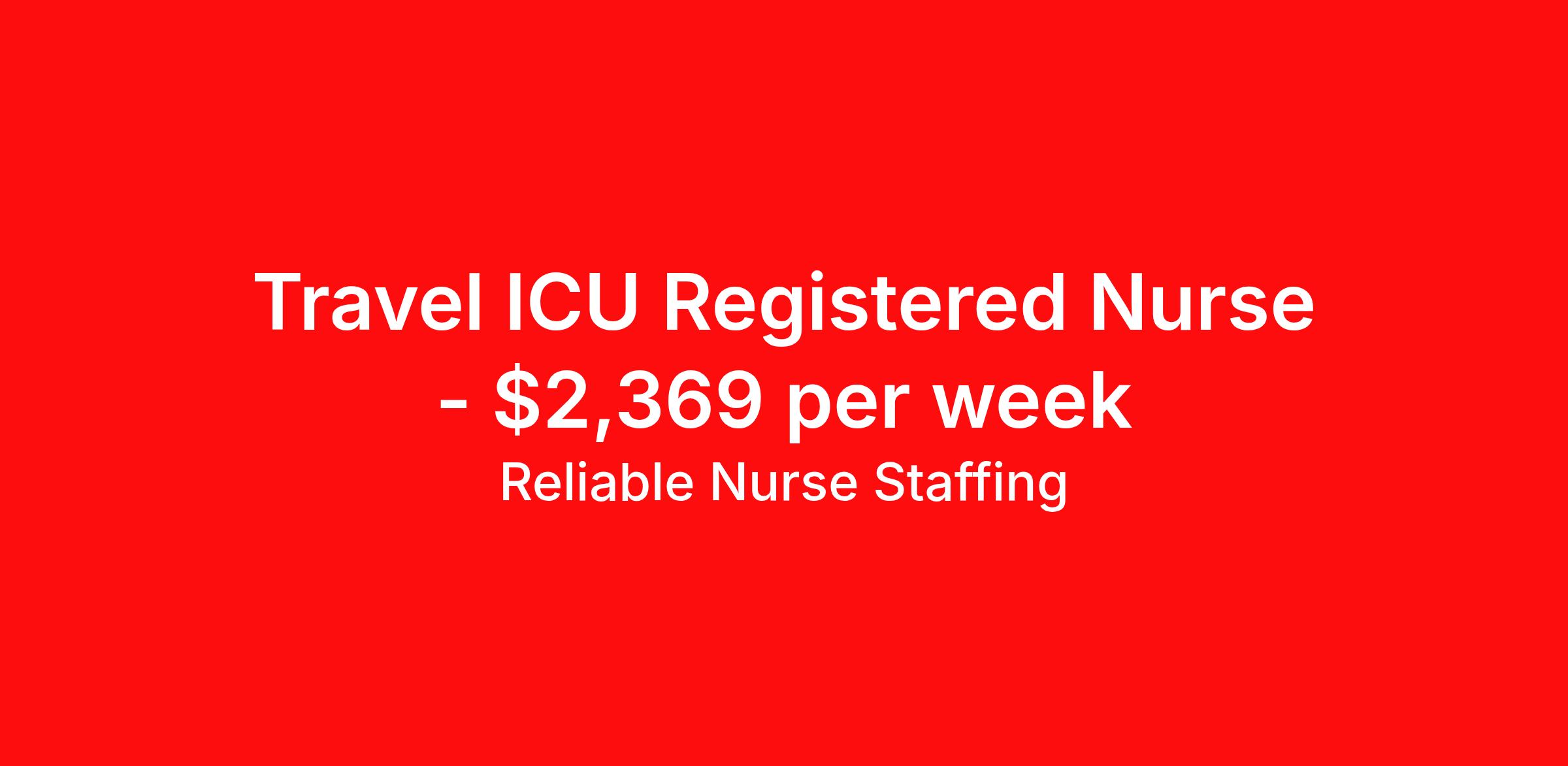 Reliable Nurse Staffing is seeking a travel nurse RN ICU - Intensive Care Unit for a travel nursing job in Omaha, Nebraska. Job Description & Requirements Specialty: ICU - Intensive Care Unit Discipline: RN Start Date: 04/13/2026 Duration: 13 weeks 36 hours per week Shift: 12 hours, nights Employment Type: Travel Reliable Nurse Staffing Job ID 60468027. Pay package is based on 12 hour shifts and 36 hours per week (subject to confirmation) with tax-free stipend amount to be determined. About Reliable Nurse Staffing Providing reliable, competent, and compassionate care to our patients and clients. Benefits Weekly pay Holiday Pay Guaranteed Hours Referral bonus Medical benefits Dental benefits Vision benefits Life insurance