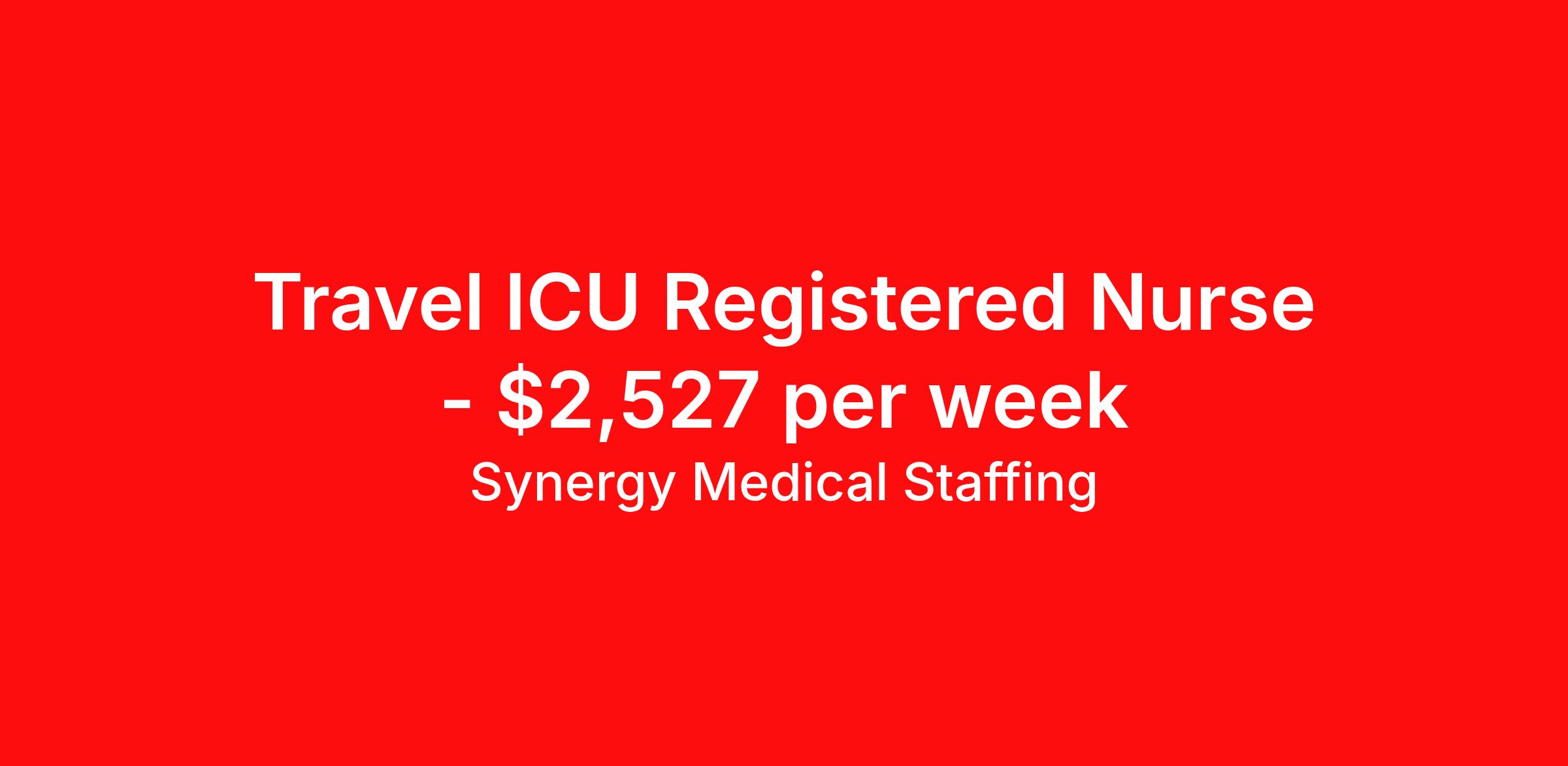 Synergy Medical Staffing is seeking a travel nurse RN ICU - Intensive Care Unit for a travel nursing job in Tuba City, Arizona. Job Description & Requirements Specialty: ICU - Intensive Care Unit Discipline: RN Start Date: 04/20/2026 Duration: 13 weeks 36 hours per week Shift: 12 hours, flexible Employment Type: Travel Travel, RN - ICU Location: Tuba City, Arizona Shift: 3x12 Flex, 13:00:00-01:00:00, 12.00-3 Duration 13 Weeks When you join Synergy Medical Staffing, you’ll have a dedicated recruiter helping you at all times. Your recruiter is a cross between a career coach and a concierge. They will help you fine-tune your resume, find your next job, and locate an apartment (even one that takes pets!). Make one call and get help with everything from placement to housing to payroll, even travel directions! As a travel, contract and permanent placement medical staffing company with over 20 years of experience in the industry, we understand your needs. Synergy’s Benefits are best in class and include the following: 401K that matches up to 5% of your pay and you are 100% vested from Day 1. Medical, Dental, Vision, Life insurance, Long and short-term disability and others Loyality Program Weekly pay Holiday Pay (varies by Assignment) Guaranteed Hours (varies by Assignment) Referral bonus Continuing Education License and certification reimbursement Synergy Medical Staffing Job ID 36171103. Pay package is based on 12 hour shifts and 36.0 hours per week (subject to confirmation) with tax-free stipend amount to be determined. Posted job title: RN:ICU,13:00:00-01:00:00 About Synergy Medical Staffing When you join Synergy Medical Staffing, you’ll have a dedicated recruiter helping you at all times. Your recruiter is a cross between a career coach and a concierge. They will help you fine-tune your resume, find your next job, and locate an apartment (even one that takes pets!). Make one call and get help with everything from placement to housing to payroll, even travel directions! As a travel, contract and permanent placement medical staffing company with over 12 years of experience in the industry, we understand your needs. Are you interested in traveling, or just a job around the corner? Whatever your preference, you can be sure there are plenty of Nursing Jobs, Allied Jobs and Physical Therapy Jobs, Occupational Therapy Jobs, Speech Therapy Jobs and Rehab Therapy jobs anywhere you want to go. Synergy Medical Staffing professionals have been in the Medical staffing employment and staffing industry for over 12 years, and have developed solid relationships with numerous healthcare facilities nationwide. Contact us now and expand your medical career with new opportunities from Synergy Medical Staffing. Synergy’s Benefits are best in class and include the following 401K Day 1 Full Medical, Dental, Vision, Life insurance, Long and short term disability and others Student Loan Repayment and CEU reimbursement Loyalty bonus after 600 hours Benefits Discount program Weekly pay Holiday Pay Guaranteed Hours Referral bonus Medical benefits Dental benefits Continuing Education License and certification reimbursement Life insurance 401k retirement plan Cancelation protection Vision benefits