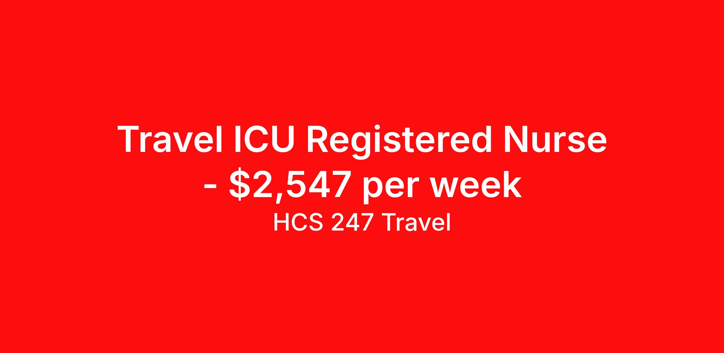 HCS 247 Travel is seeking a travel nurse RN ICU - Intensive Care Unit for a travel nursing job in Odessa, Texas. Job Description & Requirements Specialty: ICU - Intensive Care Unit Discipline: RN Start Date: 04/14/2026 Duration: 13 weeks 48 hours per week Shift: 12 hours, nights Employment Type: Travel HCS 247 Travel Job ID 62499601. Pay package is based on 12 hour shifts and 48 hours per week (subject to confirmation) with tax-free stipend amount to be determined. About HCS 247 Travel HCS 24/7 is a national healthcare staffing organization specializing in the placement of Registered Nurses and Allied health professionals across acute care and other clinical settings. We support travel assignments, local short- and long-term contracts, per diem, temp-to-perm, and direct hire opportunities nationwide. Our clinical coverage includes Registered Nurse specialties such as ER, ICU, Med-Surg, Telemetry, Step-Down, OR, PACU, L&D, Mother/Baby, NICU, Cath Lab, Endoscopy, and more along with a full range of allied and imaging professionals, including Respiratory Therapists, Surgical Technicians, X-Ray Techs, CT Techs, MRI Techs, Interventional Radiology (IR) Techs, Cath Lab Techs, Ultrasound/Sonographers, Mammography Techs, and Nuclear Medicine Techs. With competitive compensation and benefits, consistent opportunities, and a clinician-first approach backed by top-rated customer service, HCS 24/7 delivers a seamless experience from initial application through assignment completion. Benefits Holiday Pay Guaranteed Hours Continuing Education Mileage reimbursement Referral bonus Medical benefits Dental benefits Vision benefits License and certification reimbursement Life insurance Benefits start day 1 Weekly pay