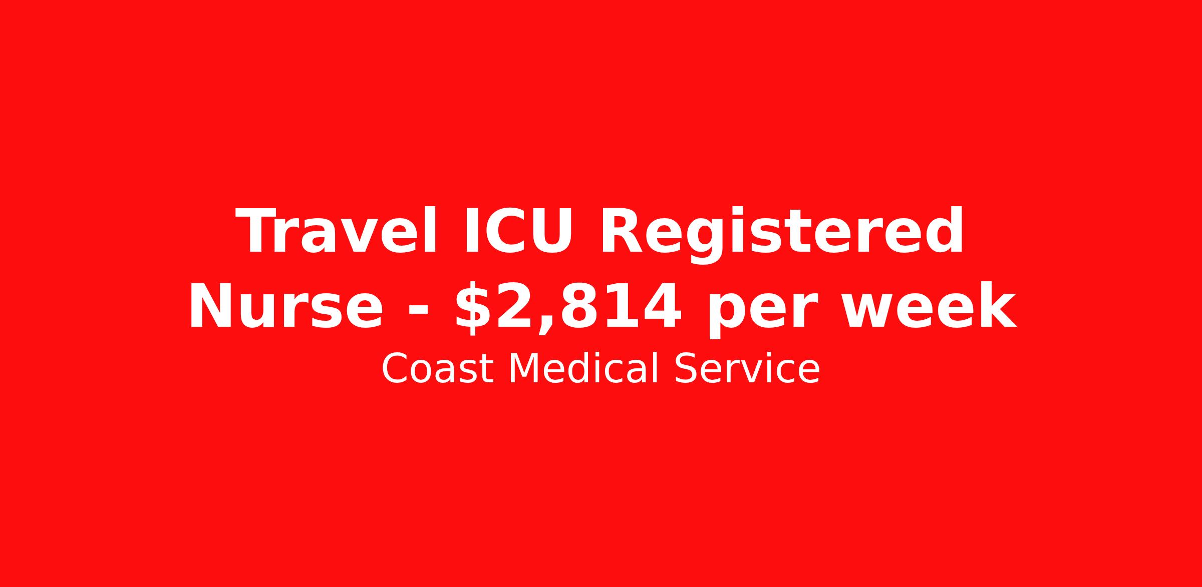 Coast Medical Service is seeking a travel nurse RN ICU - Intensive Care Unit for a travel nursing job in Franklin, Wisconsin. Job Description & Requirements Specialty: ICU - Intensive Care Unit Discipline: RN Start Date: 04/12/2026 Duration: 13 weeks 48 hours per week Shift: 12 hours, days Employment Type: Travel Coast Medical Service is a nationwide travel nursing & allied healthcare staffing agency dedicated to providing an elite traveler experience for the experienced or first-time traveler. Coast is featured on Blue Pipes' 2023 Best Travel Agencies and named a 2022 Top Rated Healthcare Staffing Firm & 2023 First Half Top Rated Healthcare Staffing Firm by Great Recruiters. Please note that pay rate may differ for locally based candidates. Please apply here or contact a recruiter directly to learn more about this position & the facility, and/or explore others that may be of interest to you. We look forward to speaking with you! Coast Medical Services Job ID 35884167. Pay package is based on 12 hour shifts and 48.0 hours per week (subject to confirmation) with tax-free stipend amount to be determined. Posted job title: RN:Intensive Care Unit (ICU),07:00:00-19:30:00