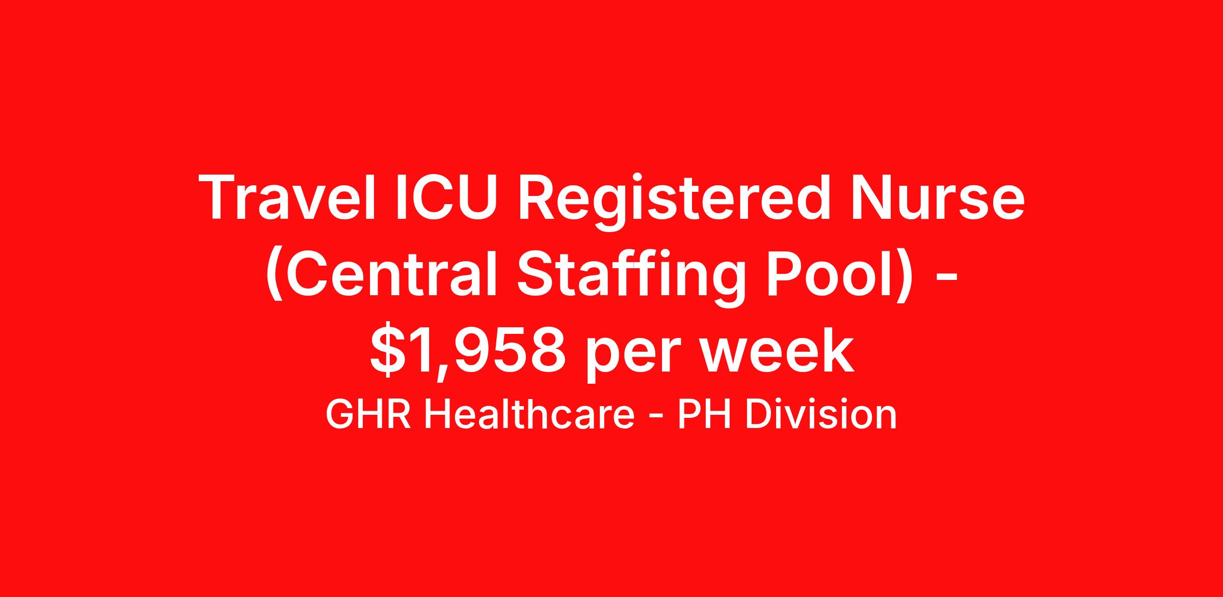 GHR Healthcare - PH Division is seeking a travel nurse RN ICU - Intensive Care Unit for a travel nursing job in Greenville, North Carolina. Job Description & Requirements Specialty: ICU - Intensive Care Unit Discipline: RN Start Date: 03/30/2026 Duration: 12 weeks 36 hours per week Shift: 12 hours Employment Type: Travel Planet Healthcare Job ID 76039408. Pay package is based on 12 hour shifts and 36 hours per week (subject to confirmation) with tax-free stipend amount to be determined. About GHR Healthcare - PH Division For over 30 years, GHR Healthcare has been the bridge between healthcare professionals and the facilities that need them nationwide. We're committed to uncovering your ideal fit, supported by GHR's dedication to competitive compensation, transparent communication, and a devoted team that genuinely cares about your career journey. You can trust us to stand by your side as your advocate, confidante, and partner in advancing your career. At GHR, care and consideration are at the heart of everything we do. Visit ghrhealthcare.com to learn more.