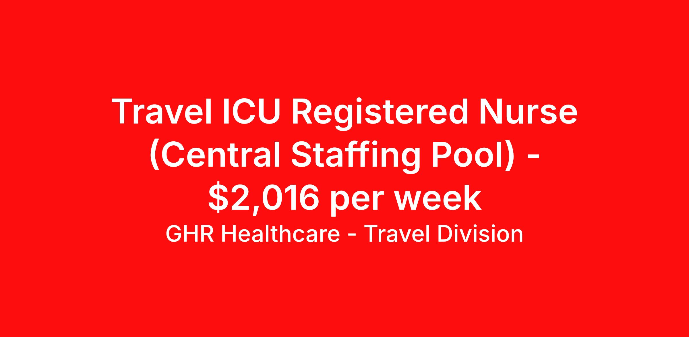 GHR Healthcare - Travel Division is seeking a travel nurse RN ICU - Intensive Care Unit for a travel nursing job in Greenville, North Carolina. Job Description & Requirements Specialty: ICU - Intensive Care Unit Discipline: RN Start Date: 03/30/2026 Duration: 12 weeks 36 hours per week Shift: 12 hours Employment Type: Travel GHR Healthcare - Travel Division Job ID 76039408. Pay package is based on 12 hour shifts and 36 hours per week (subject to confirmation) with tax-free stipend amount to be determined. About GHR Healthcare - Travel Division For over 30 years, GHR Healthcare has been the bridge between healthcare professionals and the facilities that need them nationwide. We're committed to uncovering your ideal fit, supported by GHR's dedication to competitive compensation, transparent communication, and a devoted team that genuinely cares about your career journey. You can trust us to stand by your side as your advocate, confidante, and partner in advancing your career. At GHR, care and consideration are at the heart of everything we do. Visit ghrhealthcare.com to learn more.