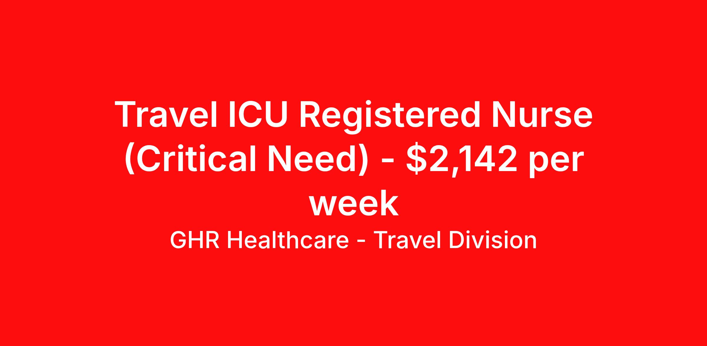 GHR Healthcare - Travel Division is seeking a travel nurse RN ICU - Intensive Care Unit for a travel nursing job in Wailuku, Hawaii. Job Description & Requirements Specialty: ICU - Intensive Care Unit Discipline: RN Start Date: ASAP Duration: 12 weeks 36 hours per week Shift: 12 hours Employment Type: Travel GHR Healthcare - Travel Division Job ID 76813451. Pay package is based on 12 hour shifts and 36 hours per week (subject to confirmation) with tax-free stipend amount to be determined. About GHR Healthcare - Travel Division For over 30 years, GHR Healthcare has been the bridge between healthcare professionals and the facilities that need them nationwide. We're committed to uncovering your ideal fit, supported by GHR's dedication to competitive compensation, transparent communication, and a devoted team that genuinely cares about your career journey. You can trust us to stand by your side as your advocate, confidante, and partner in advancing your career. At GHR, care and consideration are at the heart of everything we do. Visit ghrhealthcare.com to learn more.
