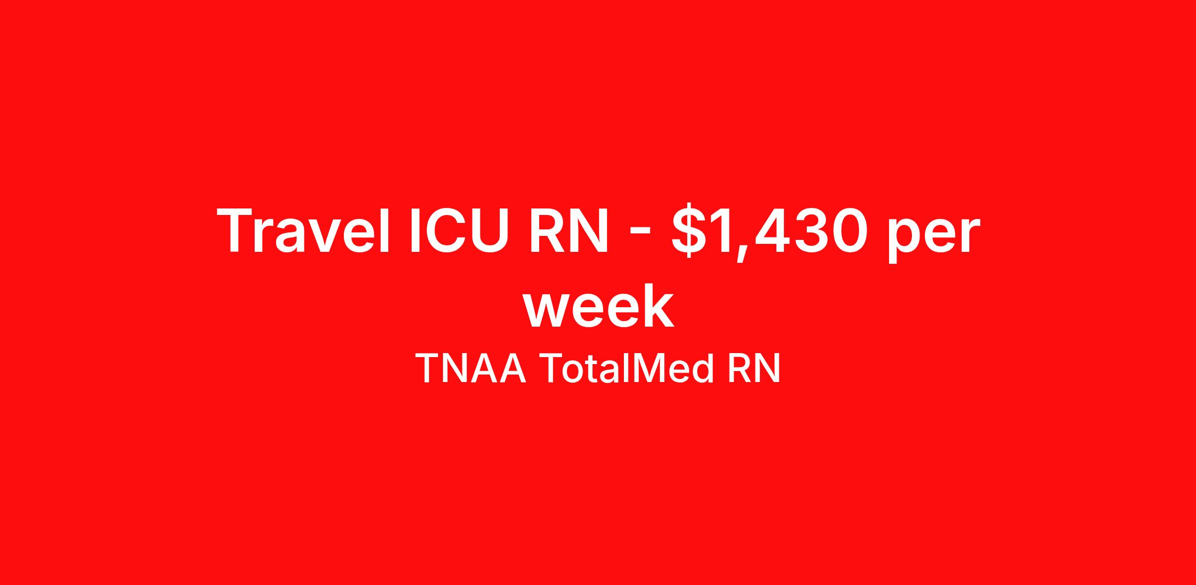 TNAA TotalMed RN is seeking a travel nurse RN ICU - Intensive Care Unit for a travel nursing job in Plano, Texas. Job Description & Requirements Specialty: ICU - Intensive Care Unit Discipline: RN Duration: 13 weeks 36 hours per week Shift: 12 hours, nights Employment Type: Travel We're looking for Cardiovascular Intensive Care Unit RNs for an immediate travel nurse opening in Plano, TX. The right RN should have 1-2 years' recent acute care experience. Read below for more requirements. As a CVICU Travel Nurse, you will work with a diverse team of caregivers to administer care to patients following specialized procedures including open-heart surgery and heart transplants. Cardiovascular Intensive Care Unit RNs should have experience and skill caring for patients in a fast-paced, urgent and critical care environment. As a CVICU Travel Nurse, you should be prepared to perform the following tasks: Provide critical care to patients with potentially life-threatening heart conditions. Prepare and administer prescribed medications. Take samples for diagnostic tests; order, interpret and evaluate diagnostic tests. Apply hemodynamic, phlebotomy and IV protocols. Be called in for emergencies to provide CPR and operate defibrillators hospital-wide. Educate patients and family members on how to manage recovery at home. CVICU Travel Nurses should be able to stand and walk for long periods of time, as well as bend, lean and stoop without difficulty. RNs should be able to easily lift 20 pounds. Moving or lifting of patients may require lifting of up to 50 pounds at times. Because of the fast-paced environment, Cardiovascular Intensive Care Unit RNs must possess good skills for coping with stress and be able to relate to people of all ages and backgrounds. Requirements*: ACLS, BLS, NIH, 2 Years * Additional certifications may be required before beginning an assignment. TotalMed Travel Job ID 1359729. Pay package is based on 12 hour shifts and 36 hours per week (subject to confirmation) with tax-free stipend amount to be determined. Posted job title: Cardiovascular Intensive Care Unit - CVICU RN - Travel Nurse About TNAA TotalMed RN TotalMed is a Top Ten, travel nursing and healthcare staffing agency with the mission of igniting purpose in healthcare. The organization staffs nurses, therapists, pharmacists, and other clinicians of all specialties in all 50 states. They offer local and travel jobs and match caregivers with the right organization to assist both facilities and patients. As an organization, they focus on putting highly-skilled staff into facilities to ensure adequate staffing for a better patient experience. TotalMed specializes in recruiting and placing healthcare professionals in travel, PRN, and permanent positions across the country in Nursing and Allied Health. Throughout 2020, the organization filled roles at even the most short-staffed facilities during the most challenging time in healthcare. By matching the right travel healthcare professional with the right organization, TotalMed continues to offer a lifeline to facilities and their patients. Benefits Weekly pay Guaranteed Hours Continuing Education 401k retirement plan Sick pay Wellness and fitness programs Referral bonus Employee assistance programs Medical benefits Dental benefits Vision benefits Benefits start day 1