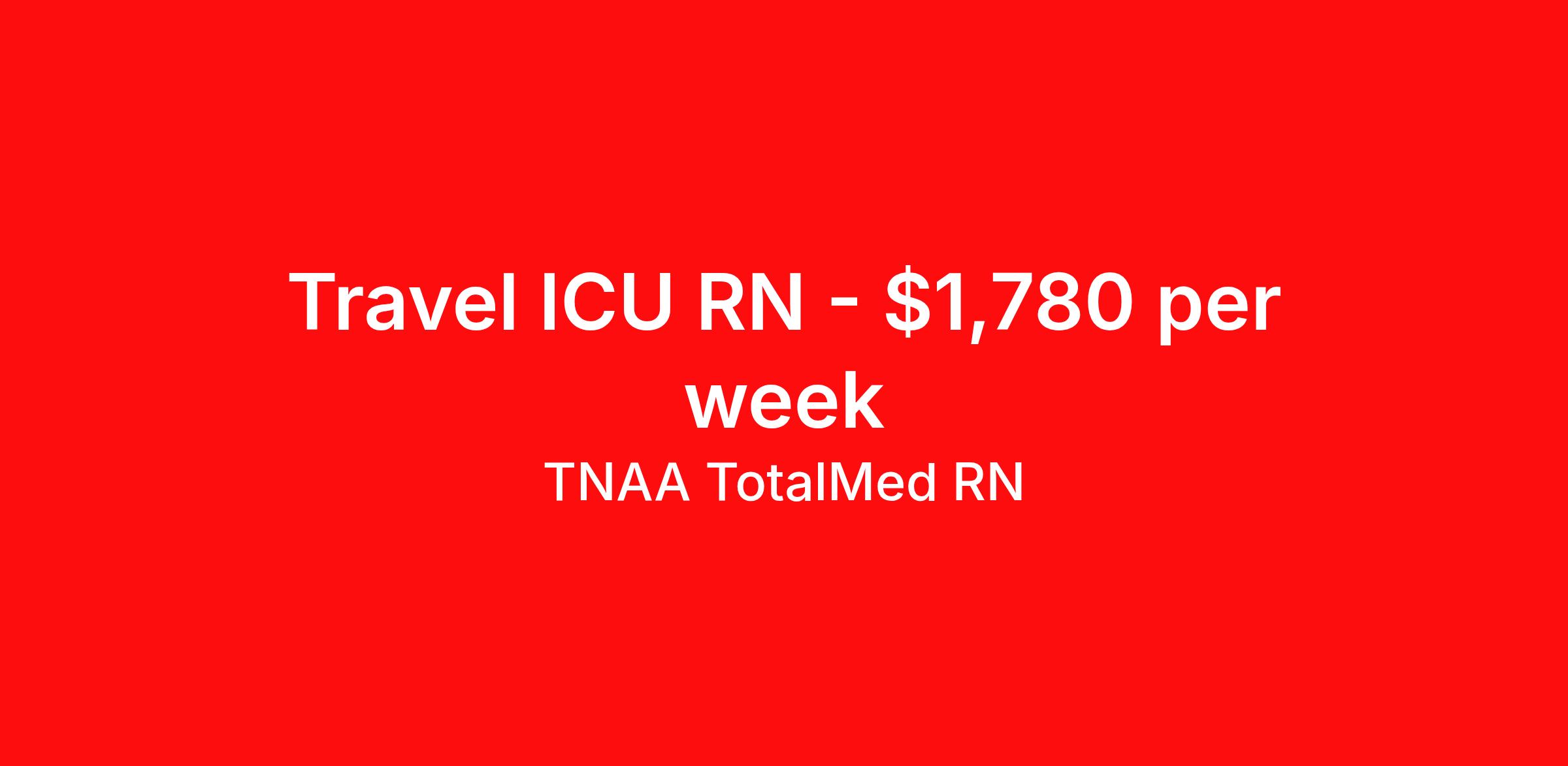 TNAA TotalMed RN is seeking a travel nurse RN ICU - Intensive Care Unit for a travel nursing job in Willoughby, Ohio. Job Description & Requirements Specialty: ICU - Intensive Care Unit Discipline: RN Start Date: 04/20/2026 Duration: 13 weeks 36 hours per week Shift: 12 hours, nights Employment Type: Travel We're looking for Intensive Care Unit RNs for an immediate travel nurse opening in Willoughby, OH. The right nurse should have 1-2 years recent acute care experience. Read below for more requirements. As an ICU Travel Nurse, you'll be responsible for evaluating and monitoring patients in an Intensive Care Unit setting. ICU RNs provide the most direct care to patients in life-threatening situations, documenting and providing physician-directed care, assessing and implementing patient care plans, and delegating to other care providers as appropriate. As an ICU RN you will also be providing education and support to patient families, possibly for long-term care needs. As an ICU Travel Nurse, you should be prepared to perform the following tasks: Provide basic bedside care. Prepare, administer and record prescribed medication, reporting any adverse reactions to treatment. Order and evaluate diagnostic tests. Take samples for lab work, order corresponding lab work and interpret reports. Monitor and adjust specialized equipment, and interpret and record electronic displays. Ensure proper placement and functioning of catheters, leads and tubing. Communicate patients' conditions to family members. ICU Travel Nurses should be able to stand and walk for long periods of time, as well as bend, lean and stoop without difficulty. RNs should be able to easily lift 20 pounds. Moving or lifting of patients may require lifting of up to 50 pounds at times. RNs may face hazards from exposure to certain chemicals or infectious diseases and will treat patients that may be confused, agitated, and/or uncooperative. Requirements*: ACLS, BLS, NIH, 2 Years * Additional certifications may be required before beginning an assignment. TotalMed Travel Job ID 1369472. Pay package is based on 12 hour shifts and 36 hours per week (subject to confirmation) with tax-free stipend amount to be determined. Posted job title: Intensive Care Unit - ICU RN - Travel Nurse About TNAA TotalMed RN TotalMed is a Top Ten, travel nursing and healthcare staffing agency with the mission of igniting purpose in healthcare. The organization staffs nurses, therapists, pharmacists, and other clinicians of all specialties in all 50 states. They offer local and travel jobs and match caregivers with the right organization to assist both facilities and patients. As an organization, they focus on putting highly-skilled staff into facilities to ensure adequate staffing for a better patient experience. TotalMed specializes in recruiting and placing healthcare professionals in travel, PRN, and permanent positions across the country in Nursing and Allied Health. Throughout 2020, the organization filled roles at even the most short-staffed facilities during the most challenging time in healthcare. By matching the right travel healthcare professional with the right organization, TotalMed continues to offer a lifeline to facilities and their patients. Benefits Weekly pay Guaranteed Hours Continuing Education 401k retirement plan Sick pay Wellness and fitness programs Referral bonus Employee assistance programs Medical benefits Dental benefits Vision benefits Benefits start day 1