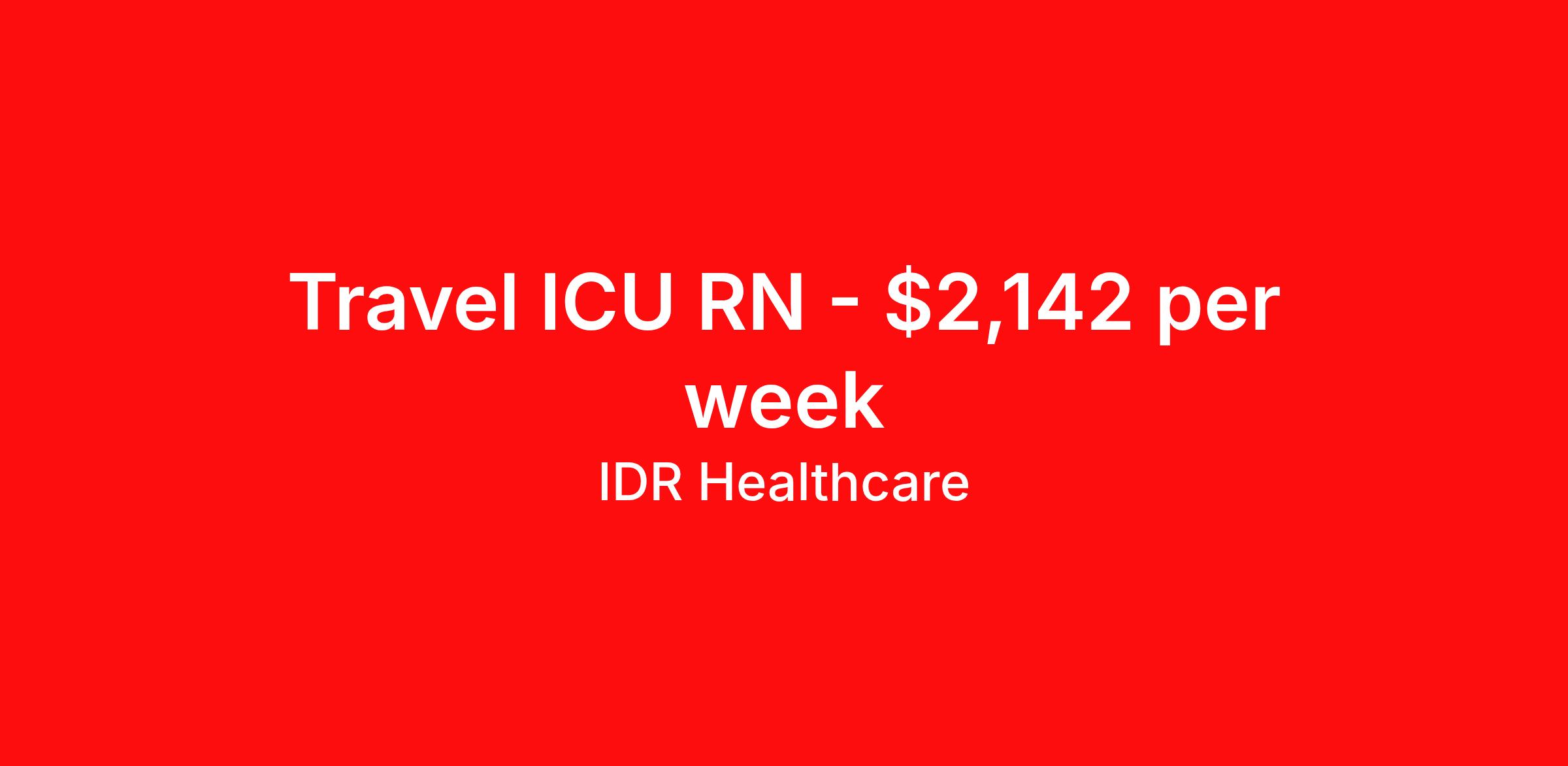 IDR Healthcare is seeking a travel nurse RN ICU - Intensive Care Unit for a travel nursing job in Wichita, Kansas. Job Description & Requirements Specialty: ICU - Intensive Care Unit Discipline: RN Start Date: ASAP Duration: 13 weeks 36 hours per week Shift: 12 hours, days Employment Type: Travel IDR Healthcare is an awarding winning staffing firm that believes it is a privilege and awesome responsibility to serve those who selflessly care for others. Our mission is to empower healthcare professionals to achieve their fullest potential both personally and professionally while they create positive change within the healthcare community. We exercise true grit, tenacity, and authenticity while embracing and ownership mindset to go above and beyond providing healthcare professionals a world class experience. We are employee owned and our travelers and clinicians earn shares/equity by just completing multiple assignments! We have been named SIA’s Fastest Growing Staffing Firms and have won ClearlyRated® Best of Staffing for 11 consecutive years! This cements our commitment to clinician satisfaction earning top net promoter scores putting us in the top 2% of agencies in North America! TravelFarWithIDR and see what an extraordinary experience is all about! Benefits 2024 World Staffing Best Staffing Firms to Work For! ESOP (Equity) Healthcare Benefits for up to 30 days Between Assignments. Comprehensive Health Insurance Dental and Vision Insurance Sign-On, Completion, & Referral Bonus Programs License and Certification Reimbursement Weekly Pay and Competitive Compensation Large Network of Clients and Job Opportunities 401k retirement plan Exclusive Assignments IDR Job ID 401094. Pay package is based on 12 hour shifts and 36 hours per week (subject to confirmation) with tax-free stipend amount to be determined. About IDR Healthcare IDR Healthcare is an awarding winning staffing firm that believes it is a privilege and awesome responsibility to serve those who selflessly care for others. Our mission is to empower healthcare professionals to achieve their fullest potential both personally and professionally while they create positive change within the healthcare community. We exercise true grit, tenacity, and authenticity while embracing and ownership mindset to go above and beyond providing healthcare professionals a world class experience. We are employee owned and our travelers and clinicians earn shares/equity by just completing multiple assignments! We have been named SIA’s Fastest Growing Staffing Firms and have won ClearlyRated® Best of Staffing for 11 consecutive years! This cements our commitment to clinician satisfaction earning top net promoter scores putting us in the top 2% of agencies in North America! Help us give back! For every booked assignment, proceeds are donated to St. Jude and Feeding America! Last year we raised over $18,000 for St. Jude and provided over 49,000 meals for children in need. TravelFarWithIDR and see what it is all about! Benefits Weekly pay 401k retirement plan Referral bonus Medical benefits Dental benefits License and certification reimbursement Vision benefits