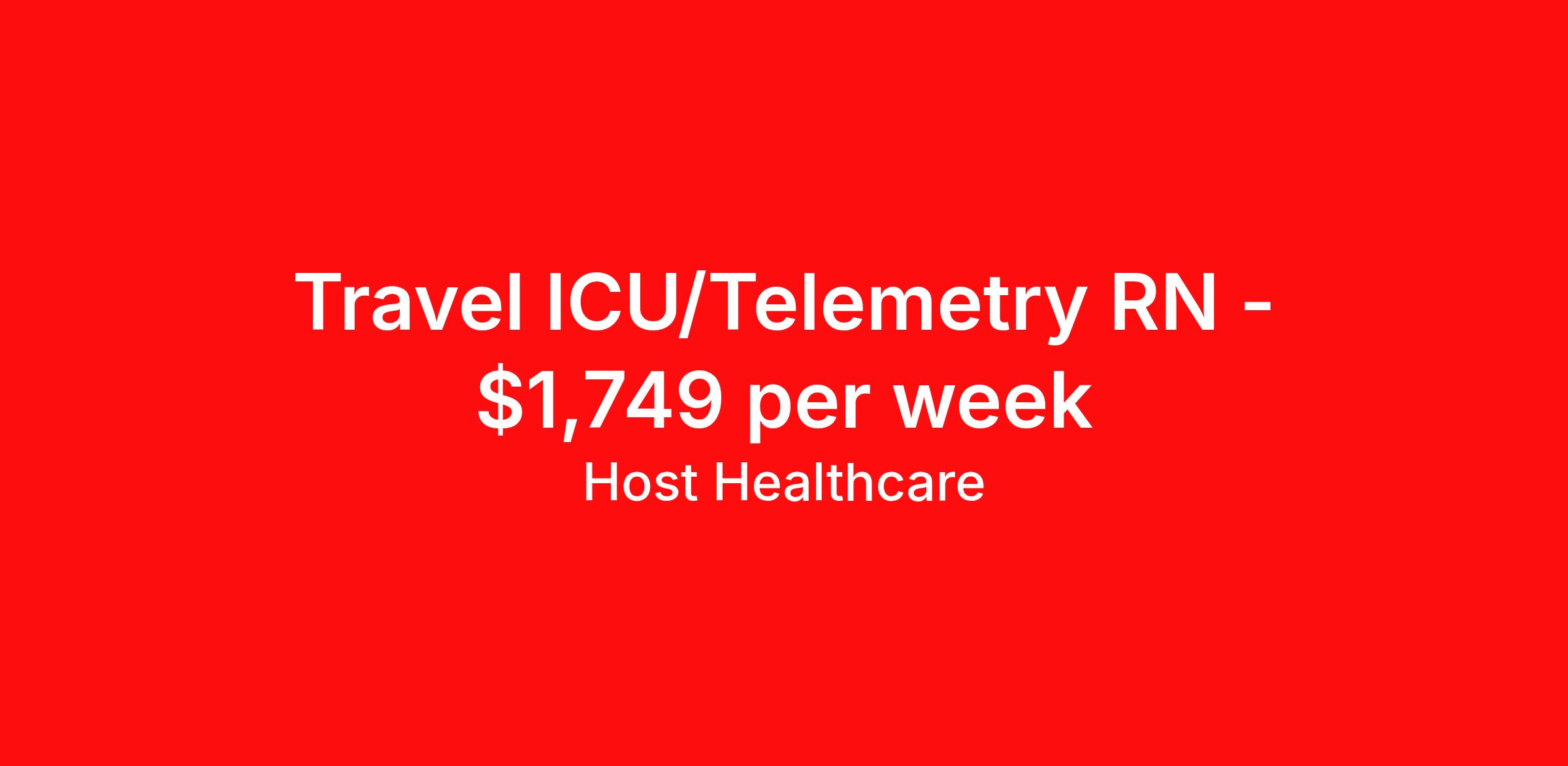 Host Healthcare is seeking a travel nurse RN ICU - Intensive Care Unit for a travel nursing job in Winston-Salem, North Carolina. Job Description & Requirements Specialty: ICU - Intensive Care Unit Discipline: RN Start Date: 04/06/2026 Duration: 13 weeks 36 hours per week Shift: 12 hours, nights Employment Type: Travel Host Healthcare Job ID a1fVX000002z3HZYAY. Pay package is based on 12 hour shifts and 36 hours per week (subject to confirmation) with tax-free stipend amount to be determined. Posted job title: RN - ICU About Host Healthcare At Host Healthcare, we provide a truly comfortable experience as you explore your travel nursing, therapy, or allied career. We make your travel healthcare journey easy by taking care of all the details, so you don’t have to. We are on a mission to help others live better and we do this by helping the healers of the world be as comfortable as possible. With access to tens of thousands of travel nursing, therapy, and allied jobs in all 50 states, our responsive and friendly recruiters find your dream position based on what’s important to you. During your assignment, get access to premium benefits, including Day 1 medical that continues up to 30 days between assignments, 401K matching, travel reimbursements, dedicated housing support, and more. We also offer 24/7 support from our team and access to our on-staff clinicians so you can feel comfortable and confident throughout your entire assignment. Travel comfortably with Host Healthcare. Benefits Referral bonus School loan reimbursement Vision benefits Wellness and fitness programs Company provided housing options License and certification reimbursement Life insurance Medical benefits Mileage reimbursement Pet insurance Discount program Employee assistance programs Guaranteed Hours Health savings account Holiday Pay 401k retirement plan Continuing Education Dental benefits