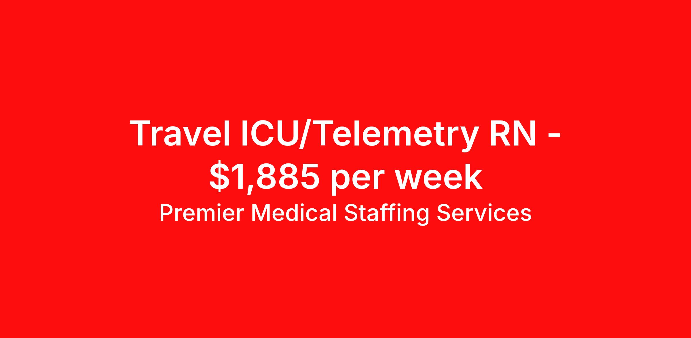Premier Medical Staffing Services is seeking a travel nurse RN ICU - Intensive Care Unit for a travel nursing job in Winston-Salem, North Carolina. Job Description & Requirements Specialty: ICU - Intensive Care Unit Discipline: RN Start Date: 04/06/2026 Duration: 13 weeks 36 hours per week Shift: 12 hours Employment Type: Travel Premier Medical Staffing Job ID 623216. Pay package is based on 12 hour shifts and 36 hours per week (subject to confirmation) with tax-free stipend amount to be determined. Posted job title: RN ICU About Premier Medical Staffing Services Premier Medical Staffing Services, LLC is a nationally expanding healthcare staffing firm for healthcare professionals and companies. We understand our clients’ need for highly qualified, expertly trained medical professionals and are passionate about helping clinicians find employment opportunities that fit their personality and needs. Able to accommodate the ever-changing needs of the healthcare landscape, we offer per-diem, contract and direct hire placements to support the unique needs of each industry sector. Premier Medical Staffing Services is Joint Commission Certified, a Military Spouse Employment Partner and is certified as a Women’s Business Enterprise. We are proudly nurse owned.
