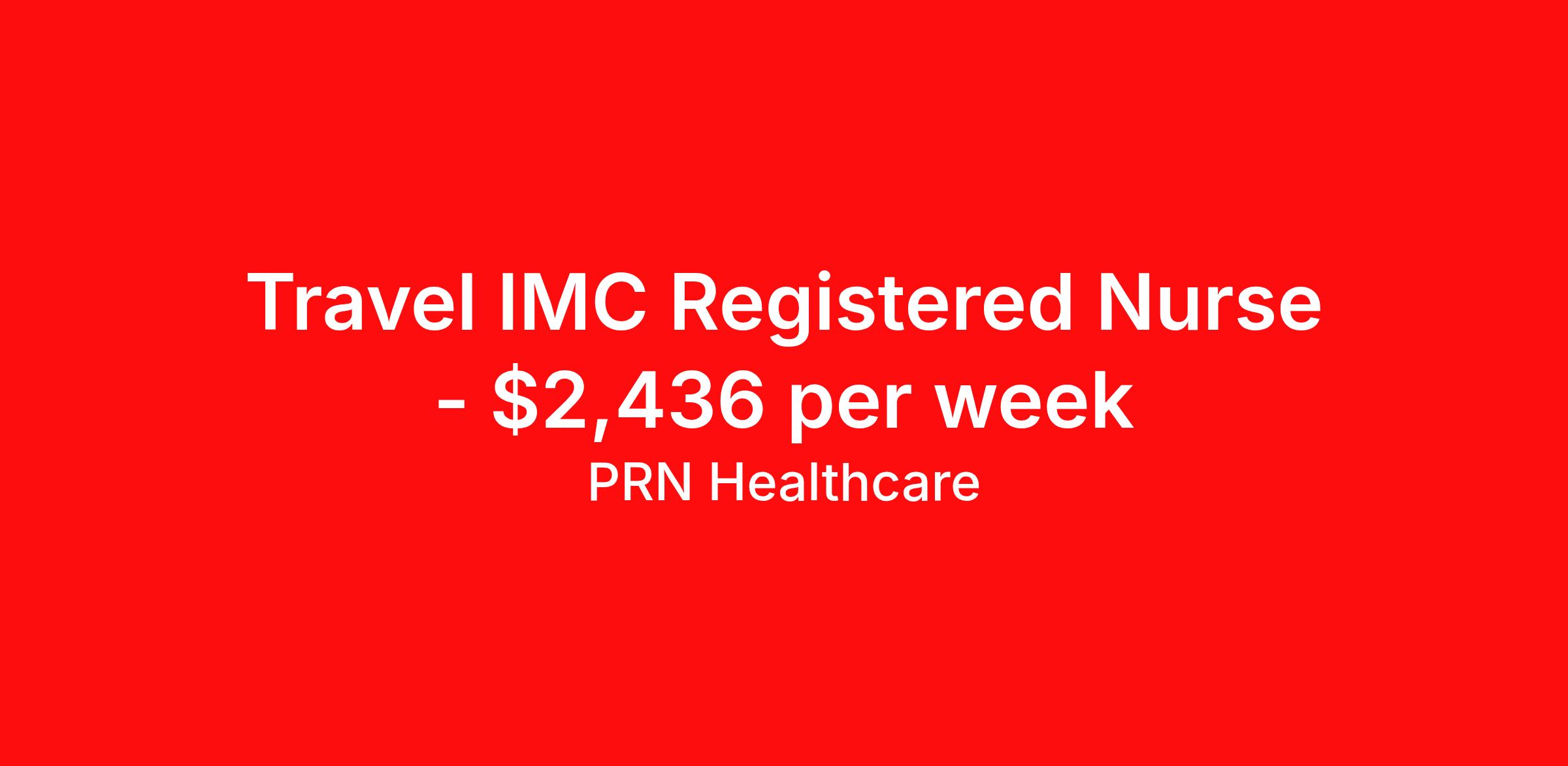 PRN Healthcare is seeking a travel nurse RN Intermediate Care for a travel nursing job in Burlington, Vermont. Job Description & Requirements Specialty: Intermediate Care Discipline: RN Start Date: 05/18/2026 Duration: 16 weeks 36 hours per week Shift: 12 hours, nights Employment Type: Travel PRN Healthcare Job ID 1513067. Pay package is based on 12 hour shifts and 36 hours per week (subject to confirmation) with tax-free stipend amount to be determined. Posted job title: IMC RN About PRN Healthcare Our story starts with a 21-year-old CNA named Pete Hietpas. Pete was diligently working in eastern Wisconsin with a variety of staffing agencies, but something was missing. He loved caring for his patients, but felt that staffing agencies were exchanging compassion for competitiveness. He was determined to change that. As a result, he started Nurses PRN in 1995 to become a model for the healthcare staffing industry – being competitive in the marketplace, yet still maintaining a compassionate heart. Over the years Nurses PRN grew and evolved as a nationwide healthcare staffing company, and therefore wanted to be more inclusive to all valued healthcare professionals: nurses, allied health, locum tenens, CNAs, and more. This lead to the introduction of PRN Healthcare, which is inclusive of Nurses PRN and all of our other healthcare divisions. Our mission to create authentic, meaningful relationships with our healthcare professionals helps us set them up for success in their dream assignment, whether that be a travel contract, local contract, or per diem shift. This is all driven by the simple idea that better care for our healthcare workers, leads to better patient care – and this is all supported by a dedicated internal staff. Our company culture is strongly backed by faith-based values and activities, to remind us that our success provides us the opportunity to serve and give back to our communities. This is the spirit of caregiving. This is PRN Healthcare. Benefits Weekly pay Guaranteed Hours Continuing Education 401k retirement plan Referral bonus Employee assistance programs Company provided housing options Medical benefits Dental benefits Vision benefits Life insurance