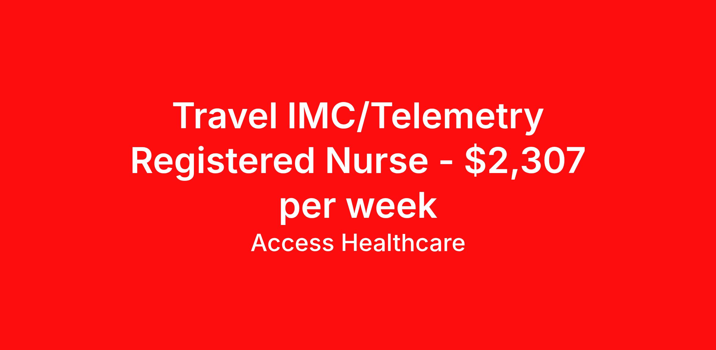 Access Healthcare is seeking a travel nurse RN Intermediate Care for a travel nursing job in Springfield, Illinois. Job Description & Requirements Specialty: Intermediate Care Discipline: RN Start Date: 04/13/2026 Duration: 13 weeks 36 hours per week Shift: 12 hours, nights Employment Type: Travel Access Healthcare Job ID 76400623. Pay package is based on 12 hour shifts and 36 hours per week (subject to confirmation) with tax-free stipend amount to be determined. About Access Healthcare Access Healthcare aims to provide superior service to our nursing family by providing around the clock support, competitive pay packages and an unmatched benefits package! Unlike other agencies, we offer a true family feel and work with you to find the placement that is right for you. We offer one of the top leading pay packages in the industry and we are ready to get you the money you deserve! Access Healthcare was founded by two travel nurses, Danielle and Diego, who had a dream and a shared vision of creating an agency which all nurses would want to work with. Our passion has led us to where we are today as one of the top 10 agencies in our home state of New Jersey, with access to contracts in all 50 states! We encourage you to join our team and we cannot wait to get to know you!