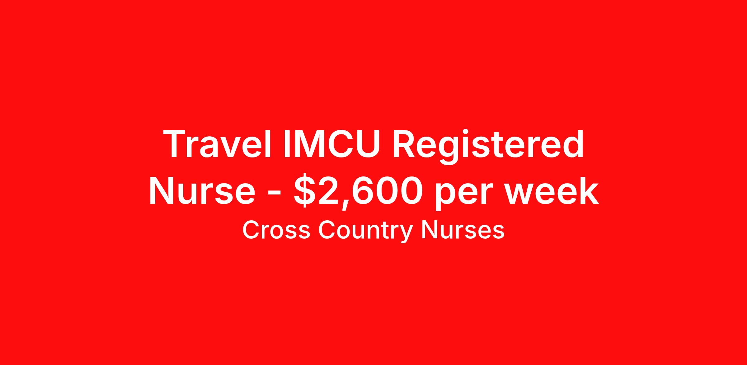 Cross Country Nurses is seeking a travel nurse RN Intermediate Care for a travel nursing job in Burlington, Vermont. Job Description & Requirements Specialty: Intermediate Care Discipline: RN Start Date: 04/06/2026 Duration: 26 weeks 36 hours per week Shift: 12 hours, days, nights Employment Type: Travel Job Description As a registered nurse - intermediate care unit (RN IMC), you will help manage the care for patients who may be experiencing severe, but usually not life-threatening health issues which require moderately complex assessment, moderately intensive therapies and interventions, while not quite requiring the resources of the intensive care unit. Minimum Requirements At least 1 year of recent acute care experience in specialty Active RN license Benefits The benefits of taking a travel nursing job with Cross Country include: Private housing or generous housing allowance Comprehensive health insurance with prescription coverage Dependent health insurance with prescription coverage Competitive salaries Referral bonuses Travel reimbursement 401(k) retirement plan Direct deposit/free checking Unlimited free CE credits Cross Country Job ID 1236646. Pay package is based on 12 hour shifts and 36 hours per week (subject to confirmation) with tax-free stipend amount to be determined. Posted job title: Registered Nurse / Intermediate Care Unit About Cross Country Nurses You care for others — we’re here to care for you. At Cross Country, we know travel nursing is about more than just the job. It’s about building a career that supports your lifestyle, your values, and your impact. We offer competitive pay, full benefits, and 24/7 support from a team that truly understands what it means to be on the front lines. Wherever your journey takes you, we’re with you every step of the way. Let’s build your best life — one assignment at a time. Benefits 401k retirement plan Referral bonus