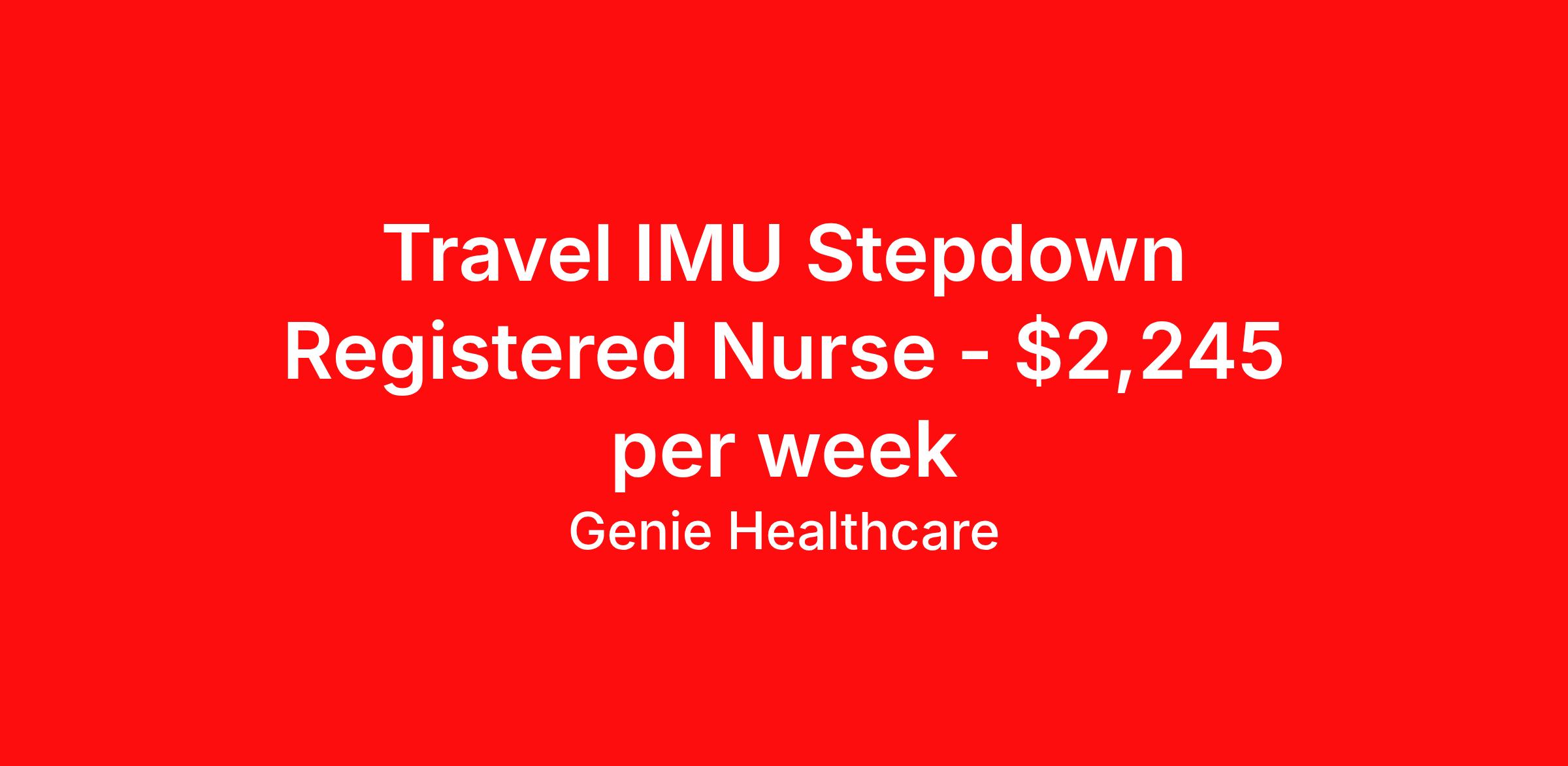 Genie Healthcare is seeking a travel nurse RN PCU - Progressive Care Unit for a travel nursing job in Wheeling, West Virginia. Job Description & Requirements Specialty: PCU - Progressive Care Unit Discipline: RN Start Date: ASAP Duration: 13 weeks 36 hours per week Shift: 12 hours, rotating Employment Type: Travel Genie Healthcare is looking for a RN to work in PCU/IMC/Stepdown for a 13 weeks travel assignment located in Wheeling, WV for the Shift (Rotating-Please verify shift details with recruiter, 19:00:00-07:00:00, 12.00-3). Pay and benefits packages are estimated based on client bill rate at time the job was posted. These rates are subject to change. Exact pay and benefits vary based on several things, including, but not limited to, guaranteed hours, client changes in bill rate, experience, etc. Benefits: Medical Insurance, Dental Insurance, Vision Insurance, 401(k) with company matching (50% up to 6% of what you contribute) Genie Healthcare Job ID 17906118. Pay package is based on 12 hour shifts and 36.0 hours per week (subject to confirmation) with tax-free stipend amount to be determined. Posted job title: RN:PCU/IMC/Stepdown,19:00:00-07:00:00 About Genie Healthcare Genie Healthcare is one of the fastest growing Nurse Travel Agencies in the USA. Genie serves hundreds of facilities and has over 4000 current travel RN contracts open at any given time. Genie provides travel RN’s flexibility, support, top pay scale, housing and the 1 rated, multi-state health insurance coverage. Genie Healthcare carries with it a commitment to providing a comprehensive level of service and quality care. Growing from a small team of eager recruiters to a company with satisfied clients in nearly every corner of the nation, delivering excellence in patient and customer care is the key to Genie’s success. The management team has 20 years of experience in workforce solutions and staffing in medical and non-medical fields, roles ranging from Clerical job to Cardiologist to software developer to CEO.