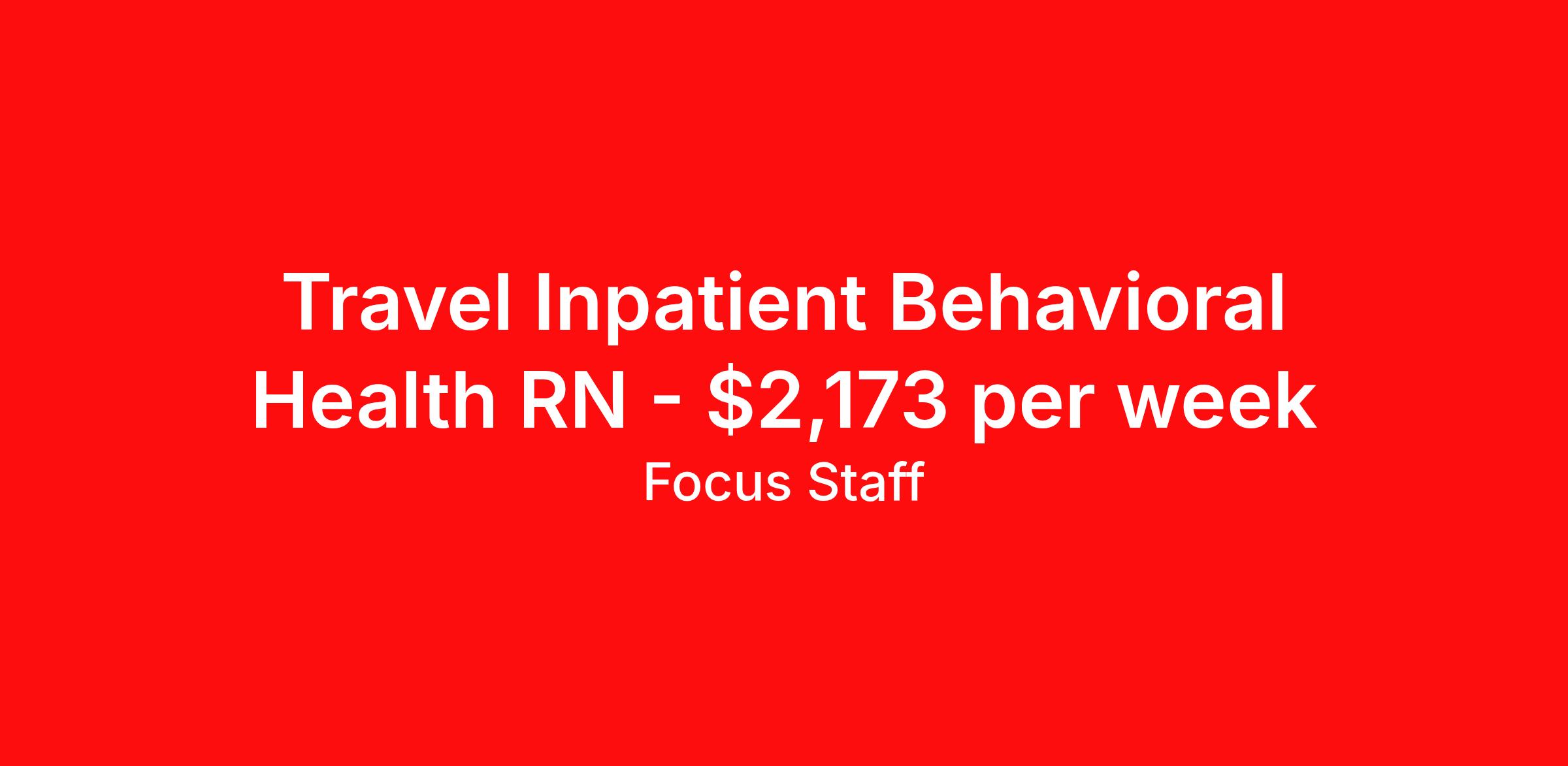 Travel Inpatient Behavioral Health RN - $2,173 per week