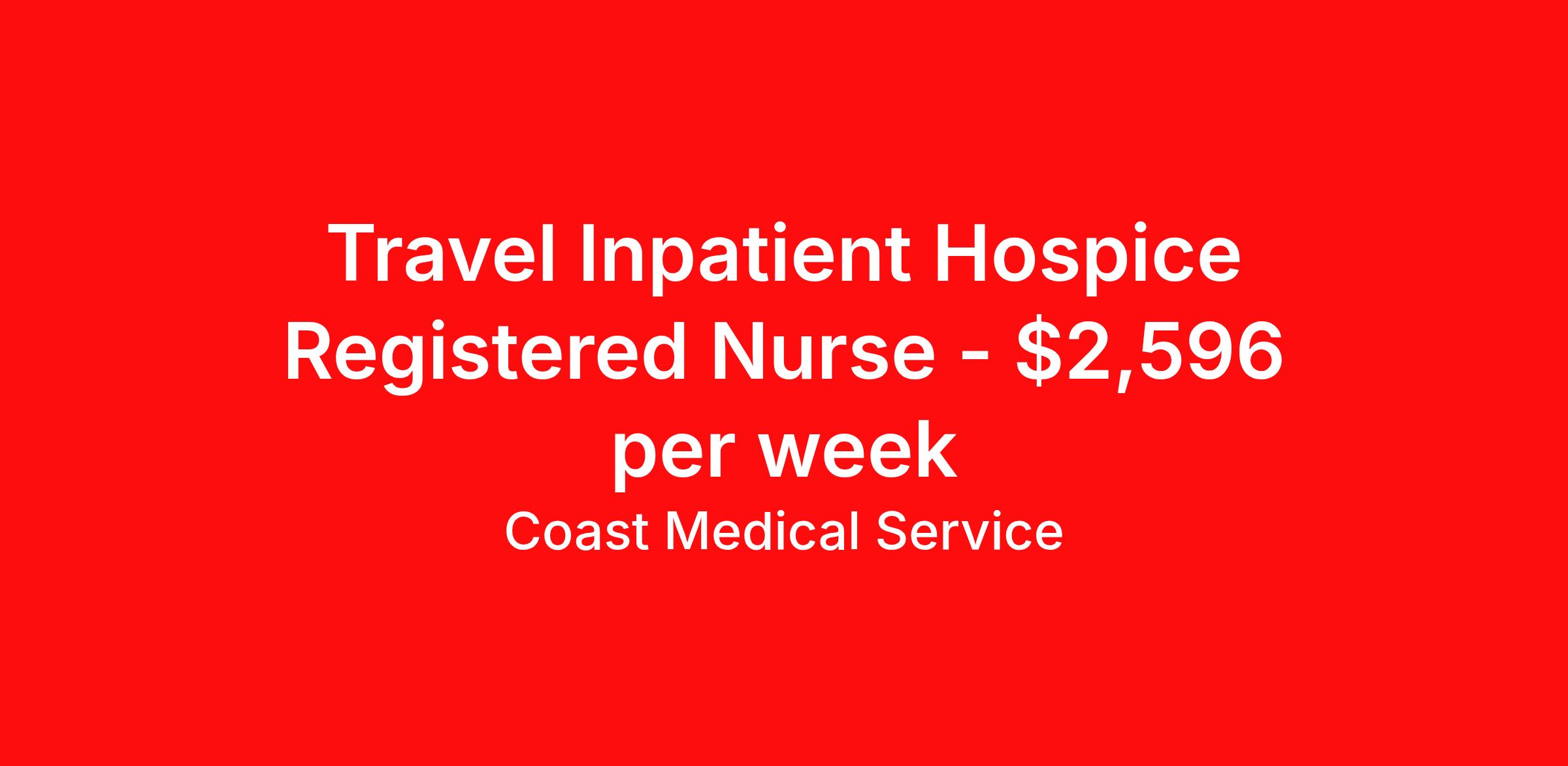 Coast Medical Service is seeking a travel nurse RN Home Health Hospice for a travel nursing job in Washington, District of Columbia. Job Description & Requirements Specialty: Hospice Discipline: RN Start Date: ASAP Duration: 13 weeks 40 hours per week Shift: 8 hours, days Employment Type: Travel Coast Medical Service is a nationwide travel nursing & allied healthcare staffing agency dedicated to providing an elite traveler experience for the experienced or first-time traveler. Coast is featured on Blue Pipes' 2023 Best Travel Agencies and named a 2022 Top Rated Healthcare Staffing Firm & 2023 First Half Top Rated Healthcare Staffing Firm by Great Recruiters. Please note that pay rate may differ for locally based candidates. Please apply here or contact a recruiter directly to learn more about this position & the facility, and/or explore others that may be of interest to you. We look forward to speaking with you! Coast Medical Services Job ID 35895874. Pay package is based on 8 hour shifts and 40.0 hours per week (subject to confirmation) with tax-free stipend amount to be determined. Posted job title: RN:Home Health,07:00:00-15:30:00