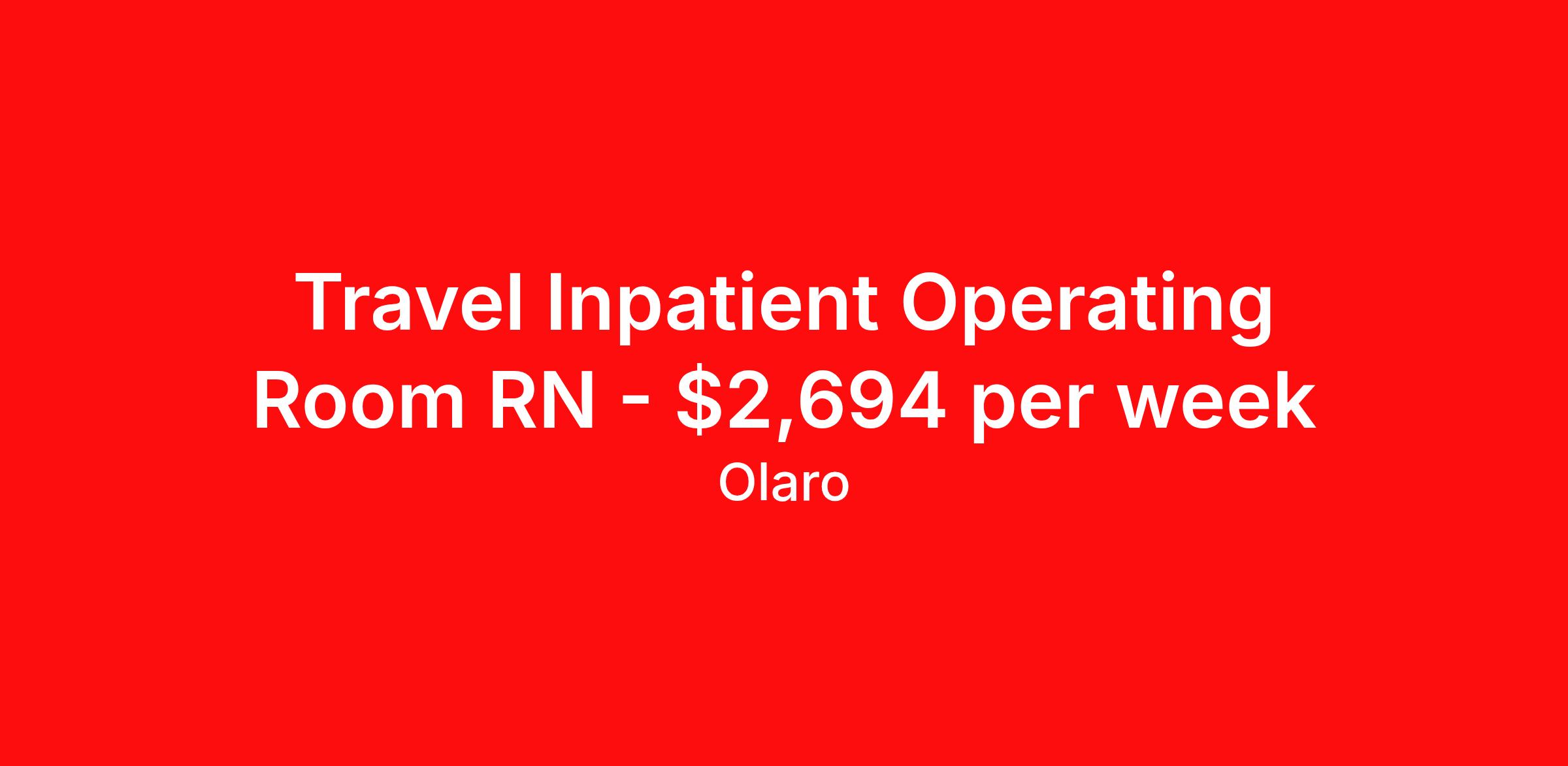 Travel Inpatient Operating Room RN - $2,694 per week
