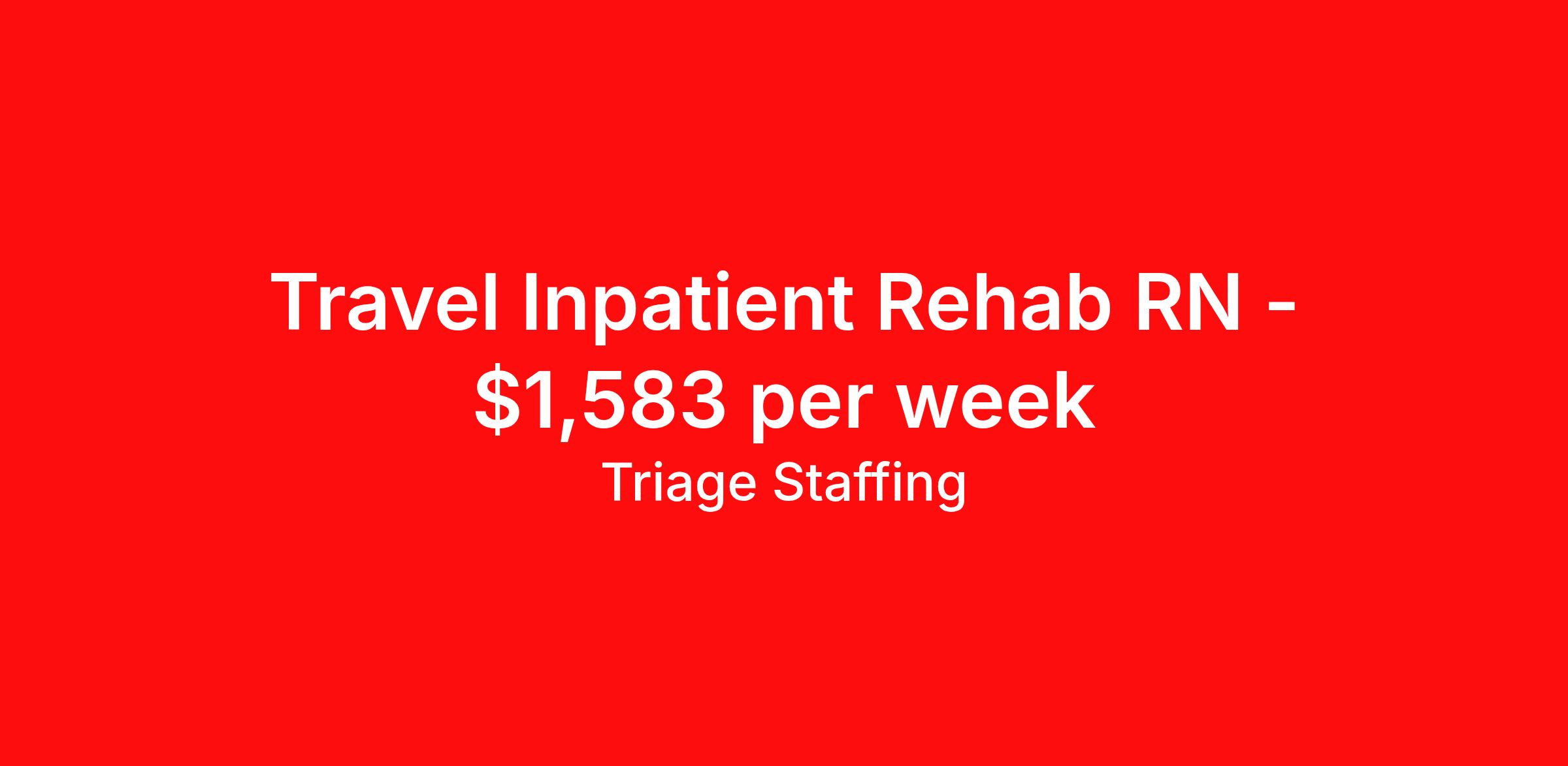 Triage Staffing is seeking a travel nurse RN Rehabilitation for a travel nursing job in Springdale, Arkansas. Job Description & Requirements Specialty: Rehabilitation Discipline: RN Start Date: 04/13/2026 Duration: 13 weeks 36 hours per week Shift: 12 hours, nights Employment Type: Travel Travel Nursing: Rehabilitation Springdale Location: Springdale Start Date: 4/13/2026 Shift Details: 12H Nights 36 hours per week Length: 13 WEEKS Apply for specific facility details.Rehab RN Triage Staffing Job ID JAELW6YK. Posted job title: Nursing: Rehabilitation About Triage Staffing At Triage, we prefer to be real . Real about expectations—both ours and yours. Real about how a decision you make today could affect your tomorrows. Real about how compensation actually works. Real about how great—or grating—your next supervisor may be. Being real allows everyone at Triage to be ready . Ready to serve you with real honesty. So if that gig near the ocean is really no day at the beach, or that third shift comes with a second-class rate, we tell you. So you can be ready, too. We staff all five major divisions of acute care—nursing, lab, radiology, cardiopulmonary and rehab therapy, offering: - Competitive, custom pay packages - One point of contact for both travelers and facilities (per division) - A reliable recruiter who's got your back throughout your entire assignment - In-house compliance and accounting specialists - A clinical liaison team available 24/7 to offer medical and professional support and career development - A mentoring program that is run and managed by actual clinicians—yeah, you read that right - And more (because of course there’s more) Are we the biggest? No. Are we the best? That’s rather subjective, but we’re trying to be. Will we work like hell to get you as close to your idea of heaven as possible? Yes. Yes, we will. Benefits: Day One comprehensive, nationwide insurance plans for health, vision and dental and life—including a HSA option Day One 401(k) program with employer-matching contributions once eligible Facility cancelling protection—your time is money on and off-the-clock Guaranteed hours Weekly paychecks via direct deposit Earned vacation bonuses for time worked Paid holidays Employee assistance program (EAP)—your mental health is important, too Continuing education, certification and licensing reimbursement Workers comp—because accidents happen Top-rated professional liability insurance Company provided housing options Referral bonus—$750 in your pocket after they’ve completed a 13-week assignment