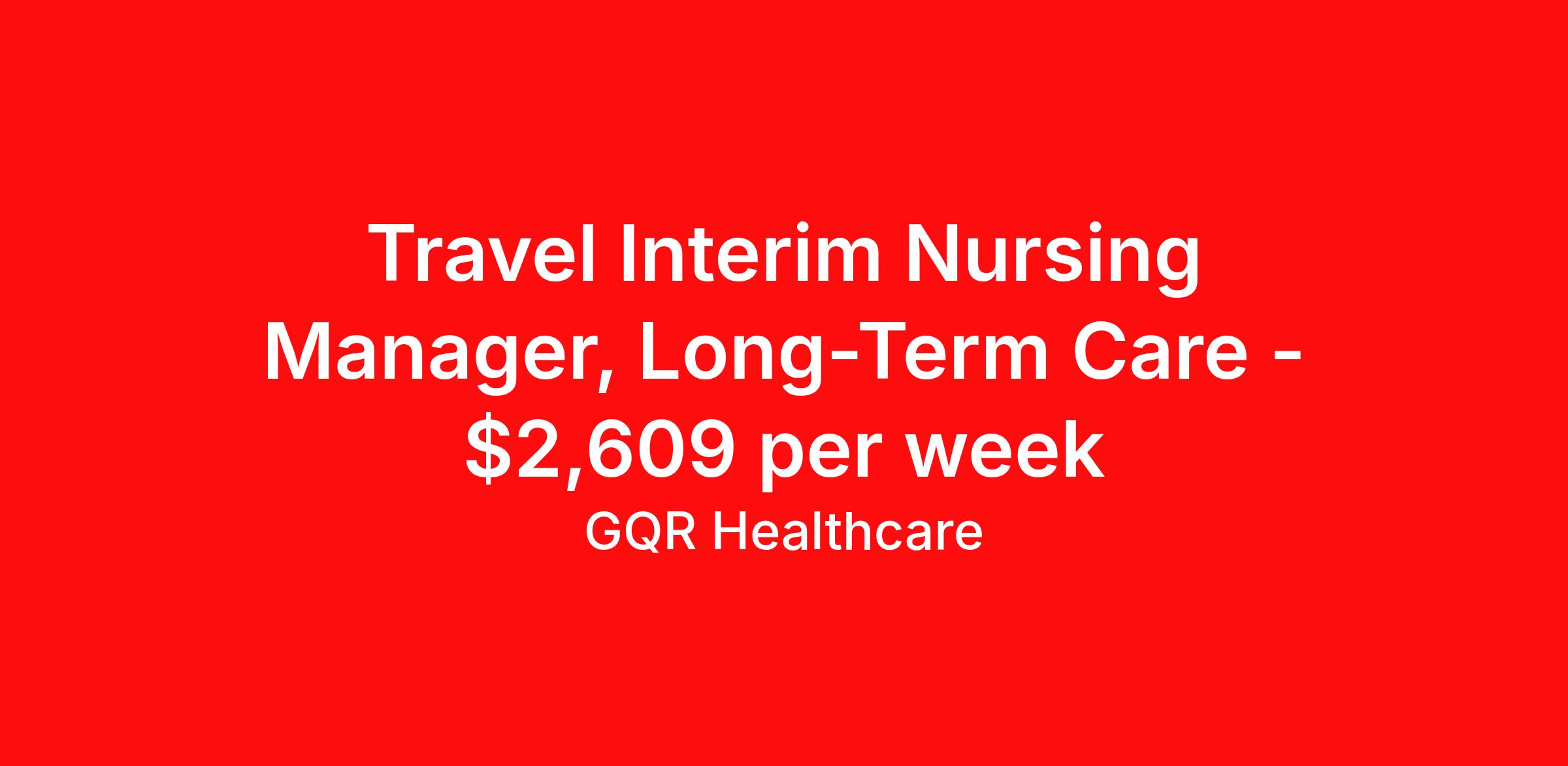 Travel Interim Nursing Manager, Long-Term Care - $2,609 per week