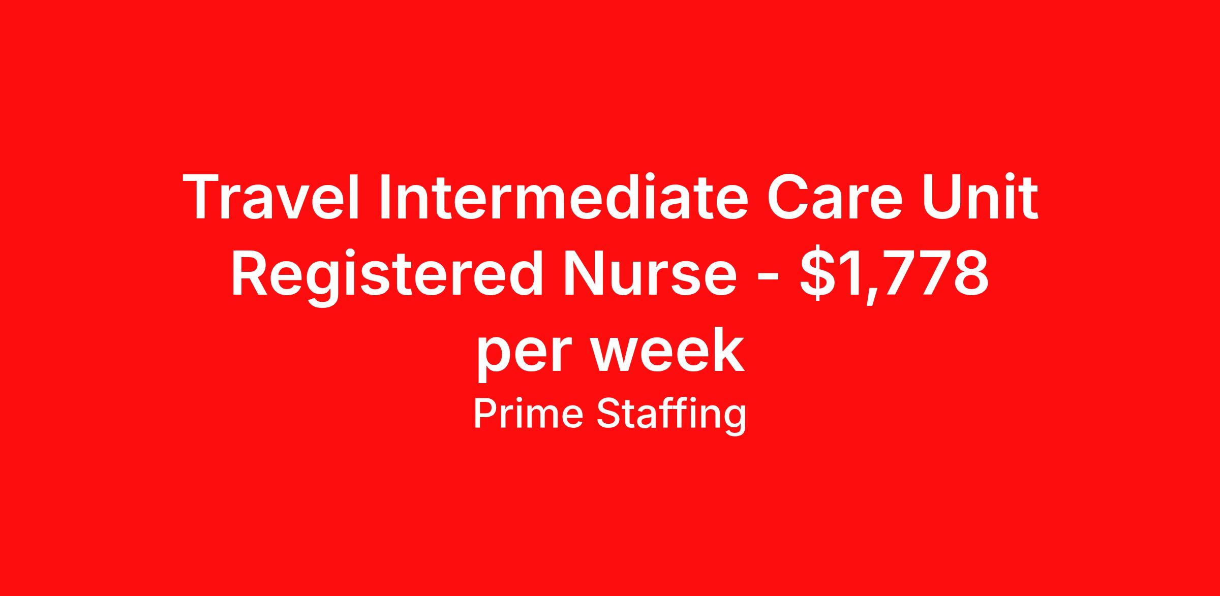 Travel Intermediate Care Unit Registered Nurse - $1,778 per week