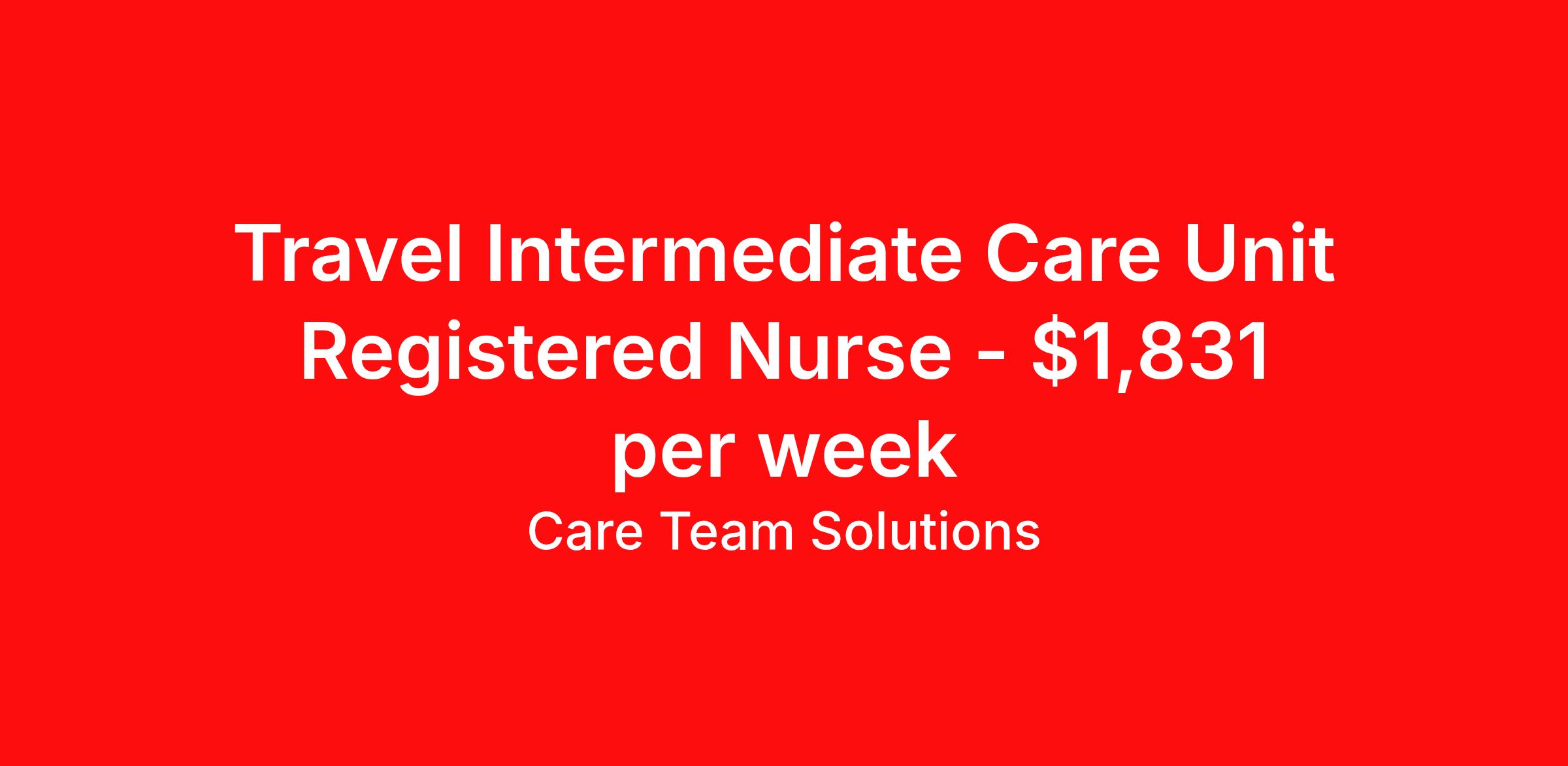 Care Team Solutions is seeking a travel nurse RN Intermediate Care for a travel nursing job in Leonardtown, Maryland. Job Description & Requirements Specialty: Intermediate Care Discipline: RN Start Date: 04/06/2026 Duration: 13 weeks 36 hours per week Shift: 12 hours Employment Type: Travel Registered Nurse must have 2 years of recent experience in particular specialty Details: Must Have 2 Years of recent Intermediate Medical Care experience. Specialty: Intermediate Medical Care Discipline: Registered Nurse Start Date: 2026-04-06 Duration: 13 Weeks Shift: 0 Hours Overnight shift. Hours Per Week: 36 Hours Employment Type: Contract Gross Weekly Pay: $1831.20 Six things that won’t happen if you apply to this job: You won’t have to guess what the downsides are. We’ll tell you up front. You won’t show up on day 1 and find out this is not what you signed up for. We won't leave your phone call ringing when it's inconvenient. Business hours for you are business hours for us. You won’t get shuffled to some customer service rep when a problem pops up. If we screw up something in securing your placement, we'll own it. That means it's on us to make it right. You won’t figure out your credentials alone. Our credentialing experts will walk you through it step by step. We've talked to thousands of travel nurses like you. We know you want good pay. You want to choose when you work. But the one thing nurse after nurse has said they want and don't have is someone in their corner. There's a lot in this business that’s messed up. We’re trying to be the people that fix it. You and every nurse with the guts to travel deserve it. We've worked hard for you to enjoy some one-of-a-kind benefits you'll not likely find anywhere else, because they benefit you more than they benefit us: Our early pay program Student loan reimbursement Free well-being tele-visits with a psychologist Care Team Solutions Job ID 584383. Pay package is based on 12 hour shifts and 36 hours per week (subject to confirmation) with tax-free stipend amount to be determined. Posted job title: IMC Registered Nurse About Care Team Solutions Two brothers who give an enormous damn. We're Justin and Kyle. Neither of us are nurses. It doesn’t take a nurse to see that the way travel nurses are treated sucks. Nursing is already hard enough. Travel nursing takes serious guts. You get the toughest assignments in places you’ve never been. Which can be fun, but it’s also stressful. You’re in your element but outside of your hometown. You can be a stranger on the team. If anyone deserves someone in their corner, it’s you. But that’s not how most agencies operate. Which is why travel nurses hate working with them. We got into this business because we saw bucket-loads of nurses moving through the "churn and burn" travel machinery. We absolutely hate that. You'll do your best work when you have the placements you want and feel fully supported in your work. We pay our people well because we want them to treat you well. Our recruiters are amazing (we picked each of them ourselves), but if you've got a problem too big for them, they can come straight to us. We work like ten feet away. The "Churners and Burners" promise you the same benefits. They might as well copy/paste them from each other. We have them too: 401k, holiday pay, healthcare, dental, travel reimbursement, etc But we've worked hard for you to enjoy some one-of-a-kind benefits you'll not likely find anywhere else, because they benefit you more than they benefit us: Our early pay program Student loan reimbursement Free well-being tele-visits with a psychologist Benefits Weekly pay Holiday Pay Guaranteed Hours 401k retirement plan Wellness and fitness programs Referral bonus Medical benefits Dental benefits Vision benefits School loan reimbursement