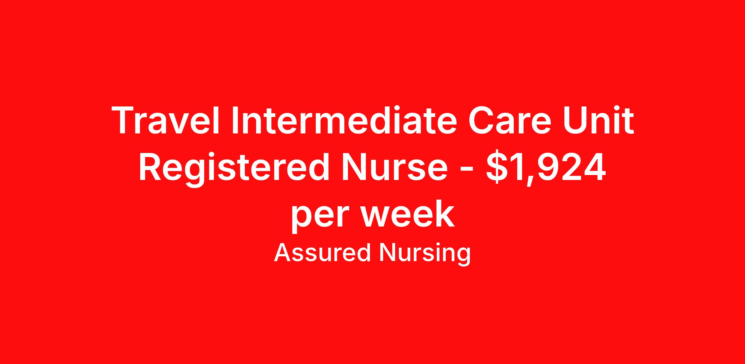 Travel Intermediate Care Unit Registered Nurse - $1,924 per week
