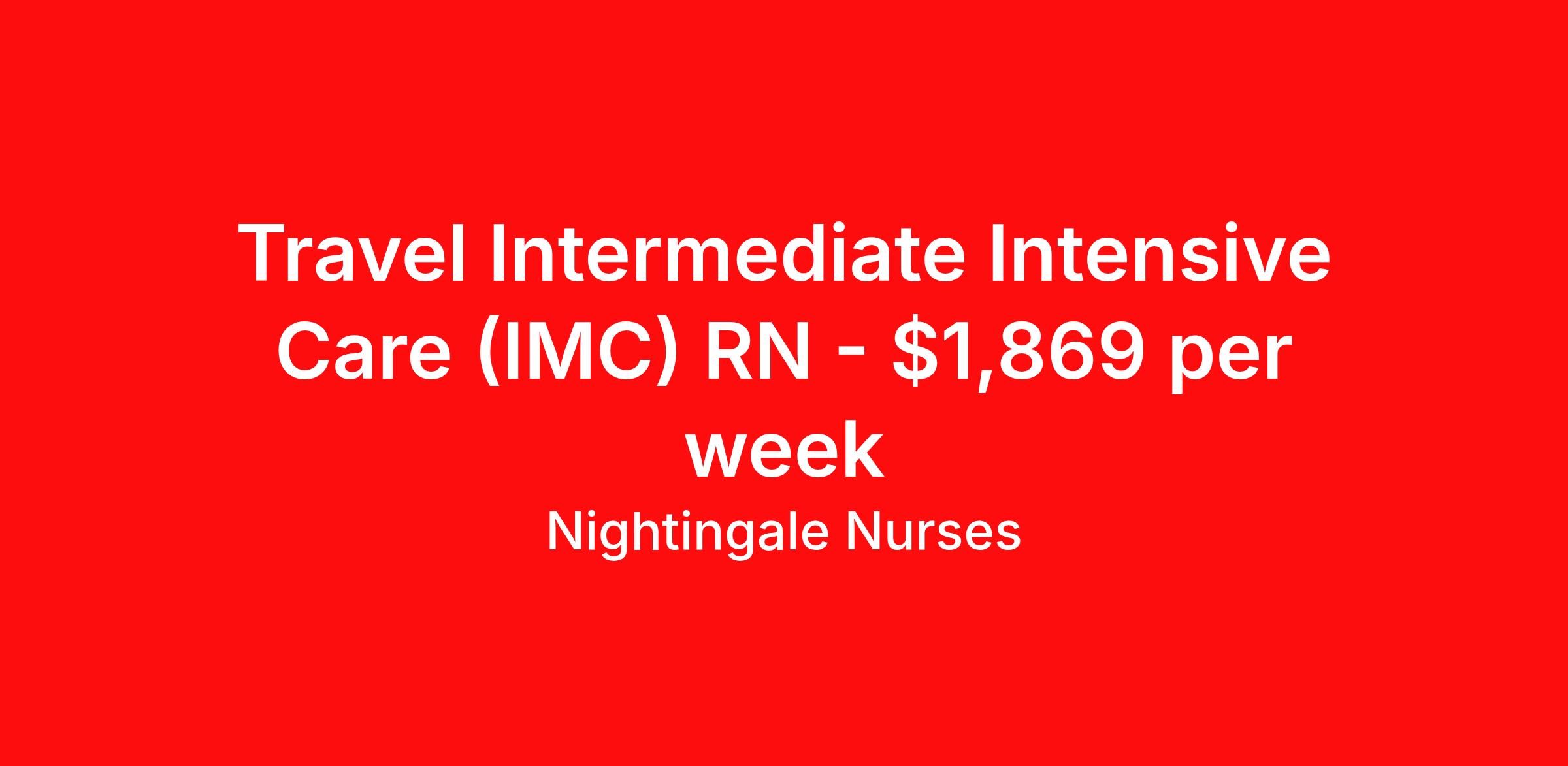 Nightingale Nurses is seeking a travel nurse RN Intermediate Care for a travel nursing job in Columbia, South Carolina. Job Description & Requirements Specialty: Intermediate Care Discipline: RN Start Date: 04/06/2026 Duration: 13 weeks 36 hours per week Shift: 12 hours, nights Employment Type: Travel About Nightingale Nurses the first name in travel nursing You may not realize it, but as an RN with real world hospital experience, you are legendary. To the lives you’ve helped save, the patients you’ve cared for, and to the hospitals where you’ve done it. And you’re just getting started. Legendary is where Nightingale begins. We’re the first name in travel nursing, representing only the very best RNs. That’s why hospitals prefer us, allowing us to offer exceptional travel nursing assignments all over the US, as well as the highest pay rates and most extensive benefits in the industry. Nightingale facilitates every aspect of your travel nursing assignment, so you can focus on doing what you do best. We want you to grow, explore, and enjoy unrivaled liberty, the freedom to nurse.