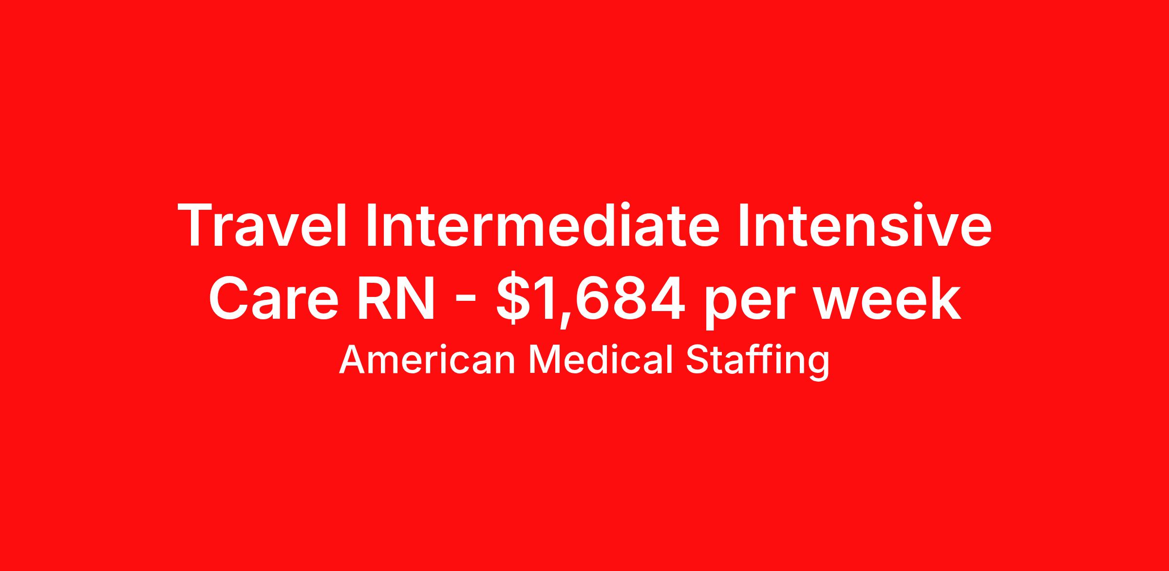 American Medical Staffing is seeking a travel nurse RN Intermediate Care for a travel nursing job in Columbia, South Carolina. Job Description & Requirements Specialty: Intermediate Care Discipline: RN Start Date: 04/13/2026 Duration: 13 weeks 36 hours per week Shift: 12 hours, nights Employment Type: Travel We’re living in the new normal. Lives and careers look different today. So why shouldn’t you have a role that delivers excitement, fewer restrictions, and brings you closer to loved ones? At American Medical Staffing (AMS), we believe in supporting the pioneers who embody the sense of adventure each new placement brings and we’re looking for a RN: IMC for our Hospital contract assignment. Job Title : RN: IMC Location : Columbia, South Carolina Pay Range : Competitive, Negotiable, with Weekly Pay Schedule : 12-Hour Nights, 19:00:00-07:00:00, 12.00-3 Contract Length : 13 Weeks Requirements : · 2 years of experience as a RN · Qualified applicants MUST have at least 2 years of experience in the IMC · Valid RN license · Be willing to obtain South Carolina licensure Why Choose American Medical Staffing? · Day-One Benefits : Medical, dental, and vision plans with no waiting period. · Wellness PTO : Build 1 or 2 weeks of paid time off into your contract. · Hotel Discounts : Save up to 60% on hotel bookings with access to 700,000 discounted properties. · Loyalty Program : Earn financial incentives automatically based on hours worked and assignment type. · Referral Program : $500 for you and $500 for each referral after 450 hours—no limits. · Working Advantage : Access exclusive discounts on retail, entertainment, and travel. · Scrub Discount : 20% off all scrubs through our customized AMS store. · Retirement Plans : 401(k) options to help you plan for the future. · Compliance & Credentialing Support : Let us handle the logistics so you can focus on patient care. Responsibilities · Deliver specialized care to patients across a variety of acute and subacute units. · Work closely with a multidisciplinary team of healthcare professionals to provide comprehensive and compassionate care. · Monitor patient conditions, administer treatments and document outcomes. · Advocate for the best possible patient experience while supporting recovery, safety, and continuity of care. Apply now to take the next step in your journey. American Medical Staffing is an Equal Employment Opportunity Employer and does not discriminate on the basis of race, color, religion, sex, national origin, sexual orientation, gender identity, disability, age, or any other non-merit factor. American Medical Staffing Job ID 110186. Pay package is based on 12 hour shifts and 36.0 hours per week (subject to confirmation) with tax-free stipend amount to be determined. Posted job title: RN:IMC,19:00:00-07:00:00 About American Medical Staffing American Medical Staffing is a staffing agency headquartered in Baltimore, MD. Our goal is to CREATE an extraordinary experience for our health care professionals. Our roots are nurse owned and operated so we know what clinicians want - lots of options, a smooth and informed placement process, competitive and accurate pay, great customer service and responsiveness to requests, and advocacy when there is an issue. When AMS was founded in 2001, we started our company with a mission to be a better agency than our competitors. We have always put a heavy emphasis into what is best for our employees, not necessarily just our clients or our company. You are not an expense as you may be to a hospital; you are an asset. We take employee advocacy seriously; you are not just a number to us. The end result is that you don`t work for us; we work for you. Since starting in Baltimore, MD, we continue to grow throughout the country. Check out our industry leading reviews on Google and Indeed to see how much our clinicians enjoy working with us! · Benefits: AMS offers an array of benefits for any employee working 30 hours or more! Those eligible employees who choose to participate will pay the premiums with deductions from their pre-tax earnings. We offer a complete benefits package including Health Insurance, 401K with up to 2% match, Life, Vision, and Dental. From health and wellness support, financial or legal needs, or help with life's everyday challenges, our Employee Assistance Program provides you with resources, services and discounts to help you manage your unique concerns and save time, energy and money. We also offer additional Employee Perks that you can enjoy as an AMS employee: Scrubin – Uniform Discounts Working Advantage – unlimited access to thousands of exclusive discounts and special offers nationwide for theme parks, shows, tours, attractions, sports, concerts, hotels, rental cars, retail gift cards, movie tickets and much more Hotel Engine - Save up to 60% when booking hotel rooms, with access to more than 700,000 deeply discounted hotels worldwide. Discounted Pet Insurance Wellness Program, including fitness, nutrition and financial wellness Betterhelp - 1 month of free therapy, followed by a discounted rate for our Healthcare Professionals and their family members. Win Win Referral Bonus - $500 for you, and $500 for them! Benefits 401k retirement plan Life insurance Medical benefits Dental benefits Vision benefits