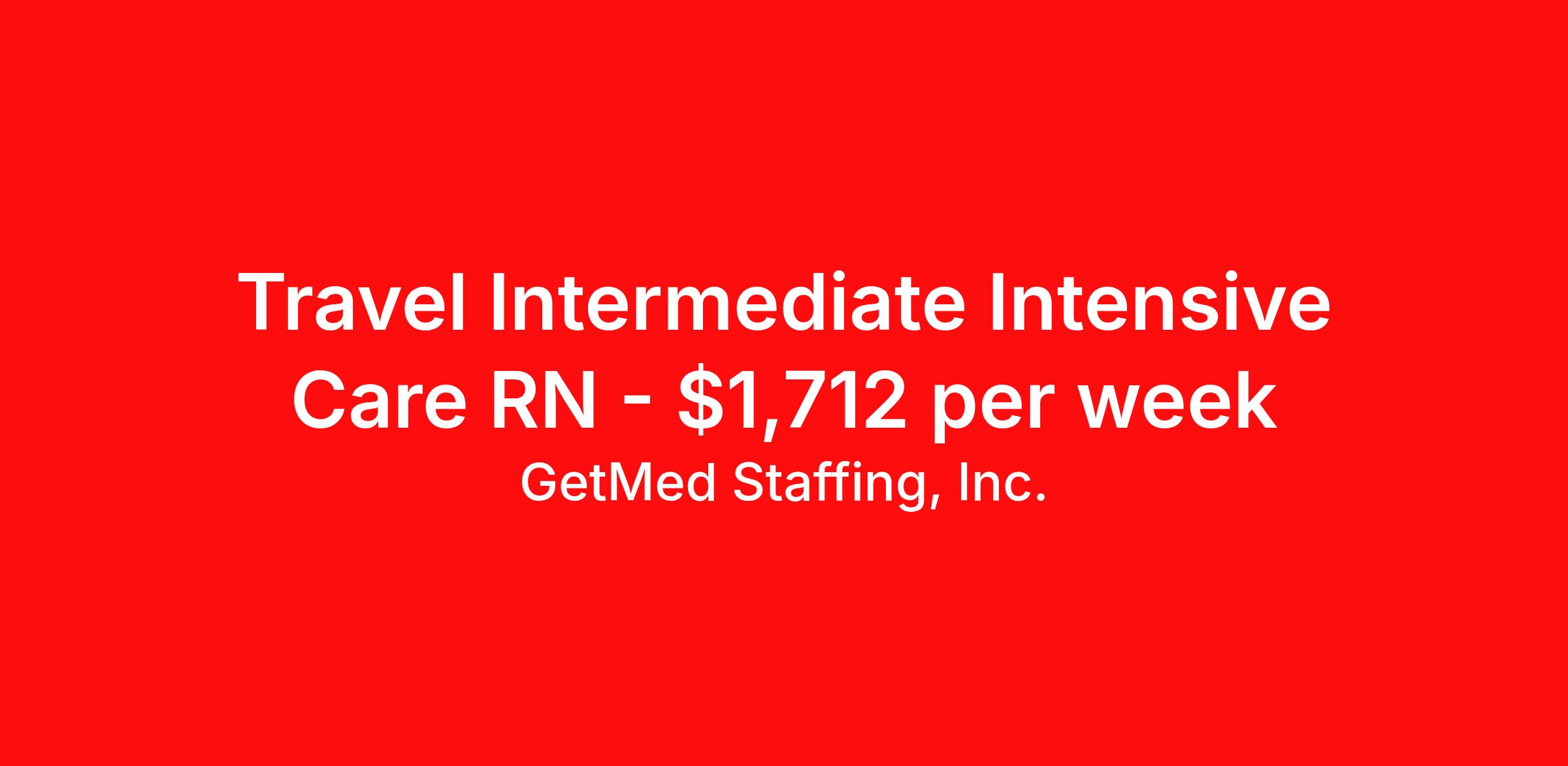 GetMed Staffing, Inc. is seeking a travel nurse RN Intermediate Care for a travel nursing job in Columbia, South Carolina. Job Description & Requirements Specialty: Intermediate Care Discipline: RN Start Date: 04/13/2026 Duration: 13 weeks 36 hours per week Shift: 12 hours, nights Employment Type: Travel GetMed Staffing is searching for a strong Intermediate Care RN to assist our traveler-friendly client. A minimum of 1-2 years of experience is required. Traveling with GetMed Staffing offers the unique opportunity to gain diverse experiences, both personally and professionally. Gain experience that matters. GetMed Staffing, Inc. Job ID 36148978. Pay package is based on 12 hour shifts and 36.0 hours per week (subject to confirmation) with tax-free stipend amount to be determined. Posted job title: RN:IMC,19:00:00-07:00:00 About GetMed Staffing, Inc. We are a diversity owned company, specializing in healthcare recruiting services. We truly understand how important a healthcare travelers' relationship is with their recruiter, as well as our relationship is with our healthcare facilities. We recognize that the needs of our healthcare travelers can vary, and therefore we provide the personalized touch necessary to ensure a successful travel assignment each and every time. Our healthcare facilities and clients benefit from us putting our healthcare travelers first. GetMed Staffing is excited to be a leader within the industry by focusing on providing healthcare travelers with more choices and possibilities as they plan for their next healthcare travel assignment. Benefits Life insurance Medical benefits Dental benefits Vision benefits 401k retirement plan