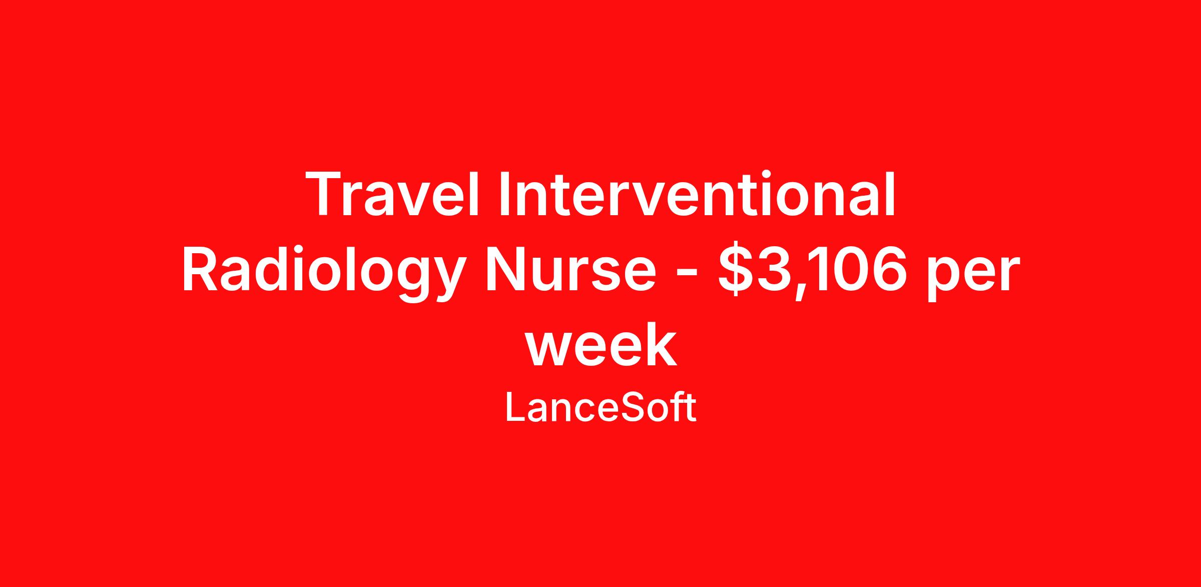 LanceSoft is seeking a travel nurse RN Interventional Radiology for a travel nursing job in Keene, New Hampshire. Job Description & Requirements Specialty: Interventional Radiology Discipline: RN Start Date: 04/06/2026 Duration: 13 weeks 40 hours per week Shift: 10 hours, days Employment Type: Travel 8:00 AM - 6:30 PM, Shift Notes: 10hr Shifts Tuesday-Friday 40hr gt Cheshire will not consider "Local Travelers" (those who reside within 50 miles of facility). Thank you! BLOCK SCHEDULING WILL NOT BE ACCOMMODATED/CONSIDERED FOR THIS NEED. Thank you! This position provides quality nursing care to both in and out patients in the Radiology Department. Submission Requirements 2 years of current Critical Care, ICU, ER, or PACU experience - [Required] EPIC experience - [Required] Interventional Radiology experience, but will consider experience in Conscious/Moderate Sedation - [PREFERRED] BLS, ACLS - AHA NH license Previous Travel - [Preferred] ALL MEDICAL ITEMS FOR COMPLIANCE MUST BE COLLECTED/COMPLETED within 5 days of offer acceptance Traveler must have their own vehicle for this need [STRONGLY REQUIRED] Perm address must be included in profile Any/All RTO must be included in profile. ALL SCHEDULING REQUESTS MUST BE MADE AT THE TIME OF SUBMISSION. Facility will NOT approve scheduling requests at/after time of offer. Please obtain this information prior to submittal. Requests after offer may lead to rescinded offer Referral Bonus About LanceSoft Established in 2000, LanceSoft is a Certified MBE and Woman-Owned organization. Lancesoft Inc. is one of the highest rated companies in the industry. We have been recognized as one of the Largest Staffing firms and ranked in the top 50 fastest Growing Healthcare Staffing firms in 2022. Lancesoft offers short- and long-term contracts, permanent placements, and travel opportunities to credentialed and experienced professionals throughout the United States. We pride ourselves on having industry leading benefits. We understand the importance of partnering with an expert who values your needs, which is why we’re 100% committed to finding you an assignment that best matches your career and lifestyle goals. Our team of experienced career specialists takes the time to understand your needs and match you with the right job Lancesoft has been chosen by Staffing Industry Analysts as one of the Best Staffing Firms to Work for.LanceSoft specializes in providing Registered Nurses, Nurse Practitioners, LPNs/LVNs, Social Workers, Medical Assistants, and Certified Nursing Assistants to work in Acute Care Centers, Skilled Nursing Facilities, Long-Term Care centers, Rehab Facilities, Behavioral Health Centers, Drug & Alcohol Facilities, Home Health & Community Health, Urgent Care Clinics, and many other provider-based facilities. Benefits Weekly pay Medical benefits
