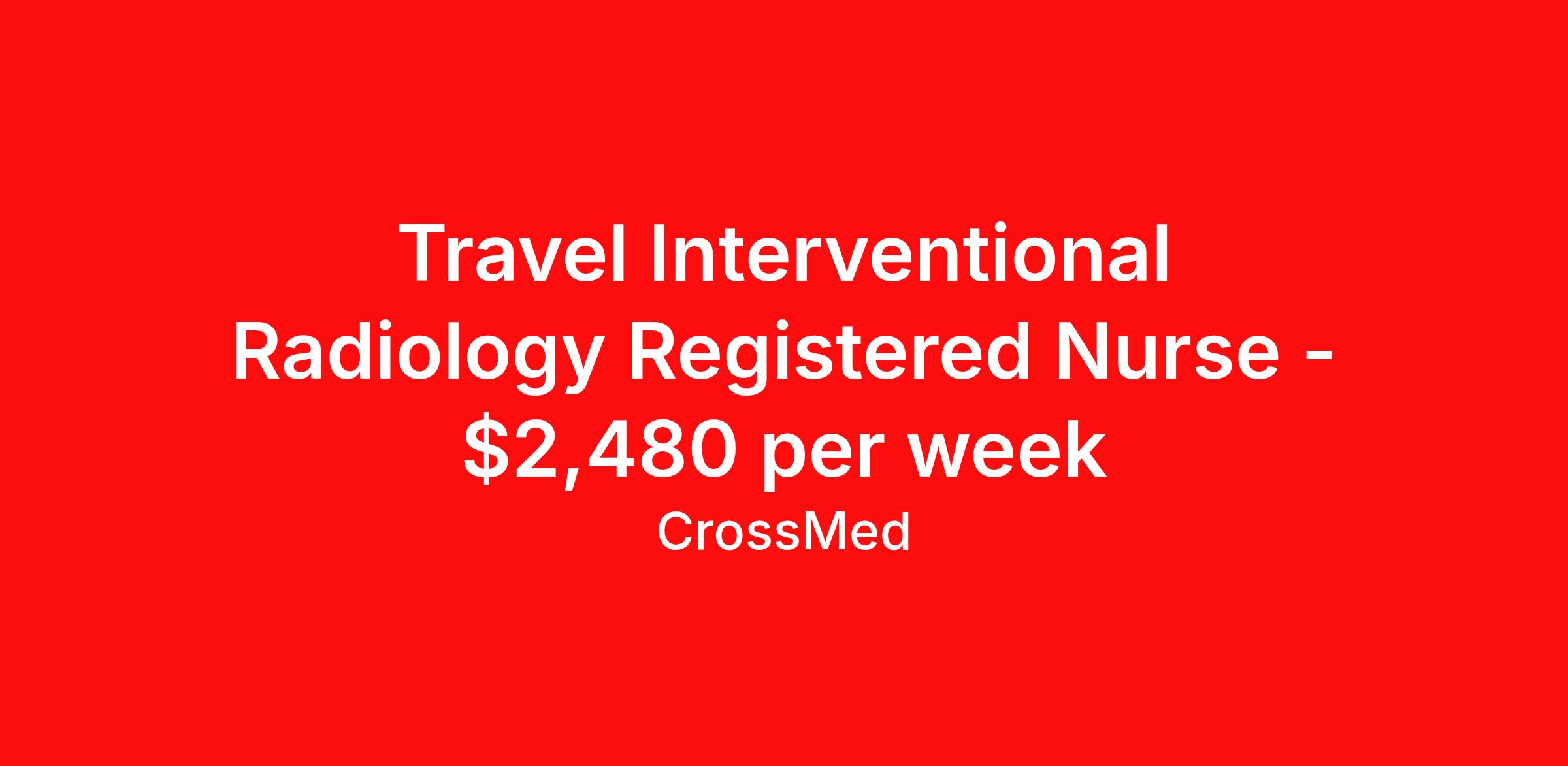 Travel Interventional Radiology Registered Nurse - $2,480 per week