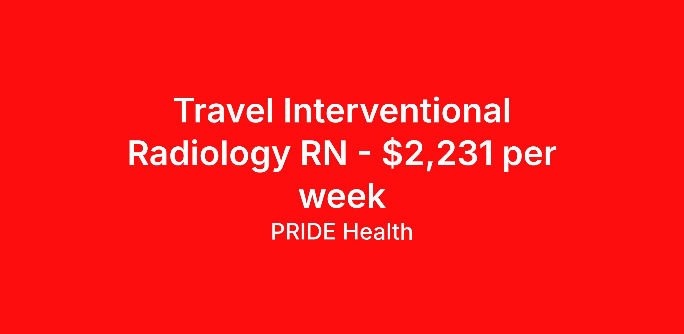 PRIDE Health is seeking a travel nurse RN Interventional Radiology for a travel nursing job in Portsmouth, New Hampshire. Job Description & Requirements Specialty: Interventional Radiology Discipline: RN Start Date: 03/30/2026 Duration: 13 weeks 40 hours per week Shift: 8 hours, days Employment Type: Travel Pride Health Job ID 17939106. Pay package is based on 8 hour shifts and 40.0 hours per week (subject to confirmation) with tax-free stipend amount to be determined. Posted job title: RN:Radiology,09:00:00-17:00:00 About PRIDE Health PRIDE Health is the minority-owned healthcare recruitment division of Pride Global—an integrated human capital solutions and advisory firm. With our robust and abundant travel nursing and allied health employment options across the U.S., PRIDE Health will allow you to help change the way the world lives and heals as it connects you with the industry’s leading healthcare organizations. Pride Global offers eligible employee’s comprehensive healthcare coverage (medical, dental, and vision plans), supplemental coverage (accident insurance, critical illness insurance and hospital indemnity), 401(k)-retirement savings, life & disability insurance, an employee assistance program, legal support, auto, home insurance, pet insurance, and employee discounts with preferred vendors. Benefits Weekly pay Holiday Pay Guaranteed Hours 401k retirement plan Cancelation protection Referral bonus Medical benefits Dental benefits Vision benefits