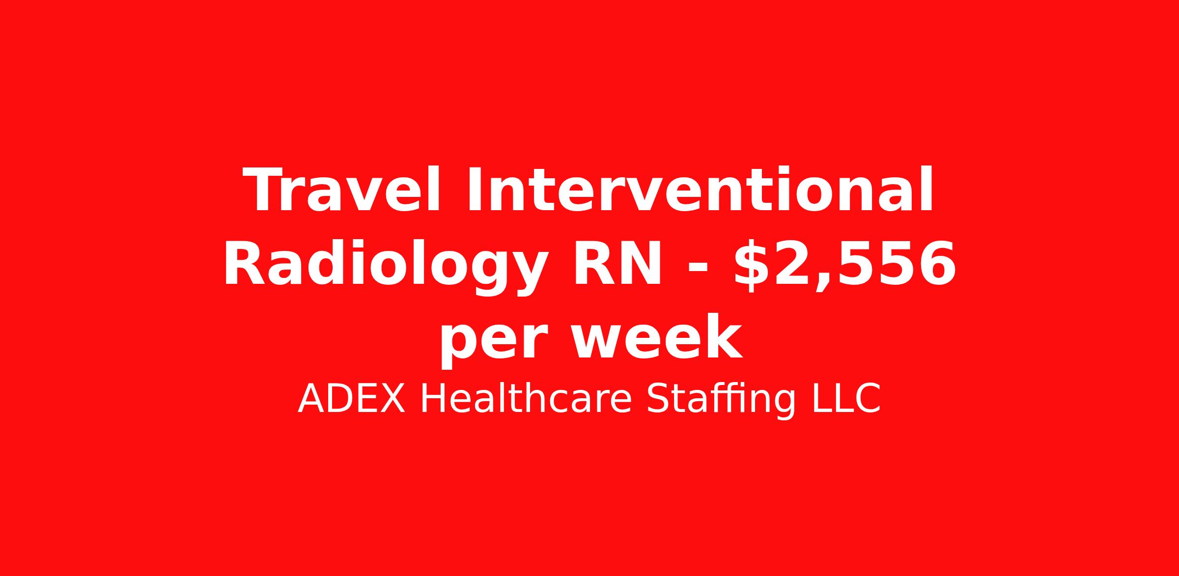 ADEX Healthcare Staffing LLC is seeking a travel nurse RN Interventional Radiology for a travel nursing job in Houston, Texas. Job Description & Requirements Specialty: Interventional Radiology Discipline: RN Start Date: 04/13/2026 Duration: 8 weeks 40 hours per week Shift: 10 hours, rotating Employment Type: Travel RN Position Job Notes: Travel or Local Registered Nurse needed for ASAP start. A minimum of 2 years of recent hospital bedside experience is required. Candidates must be able to start within 5 weeks. Opportunity for extension upon successful completion of the initial assignment. $750 referral bonus available. Opportunity: RN - IR Job Details: • Work variable 4x10 hour shifts with options of 7:00 AM - 5:30 PM or 8:00 AM - 6:00 PM • Participate in 7-day call coverage per rotation with call required one day per month, sometimes two • Radiology nursing experience in interventional radiology/procedural preferred • If no radiology nursing experience, ICU or Emergency Room experience required • Critical care experience (ICU) strongly preferred • Experience with CT scans, interventional medicine, moderate sedation, PICC lines, and anesthesia care • Work environment similar to a Cath Lab setting • Handle scheduled outpatients and emergency patients as needed • Must be flexible as workload can vary and become very busy • Required certifications: ACLS, BLS (AHA), NIHSS • Use EPIC charting system • BSN not required • Manager offers flexible scheduling • Acute care setting Facility: This major healthcare organization operates a comprehensive medical center providing advanced interventional radiology services. The facility features state-of-the-art imaging and procedural equipment, offering a wide range of interventional procedures in a setting similar to a cardiac catheterization lab. The organization maintains high standards for patient care and utilizes modern technology to support complex medical procedures and imaging services. Location: Houston, TX Houston offers an exciting metropolitan experience as the fourth-largest city in the United States, known for its diverse culture, world-class dining scene, and thriving job market. The city provides excellent professional opportunities in healthcare while offering vibrant entertainment, arts districts, and year-round outdoor activities in a dynamic urban environment. Adex Job ID 1070209. Pay package is based on 10 hour shifts and 40 hours per week (subject to confirmation) with tax-free stipend amount to be determined. About ADEX Healthcare Staffing LLC ADEX has been placing healthcare professionals across the US since 2004. Originally founded in Atlanta, GA, the company's headquarters are now located in Tampa, FL. JCAHO certified since 2009. Benefits Referral bonus